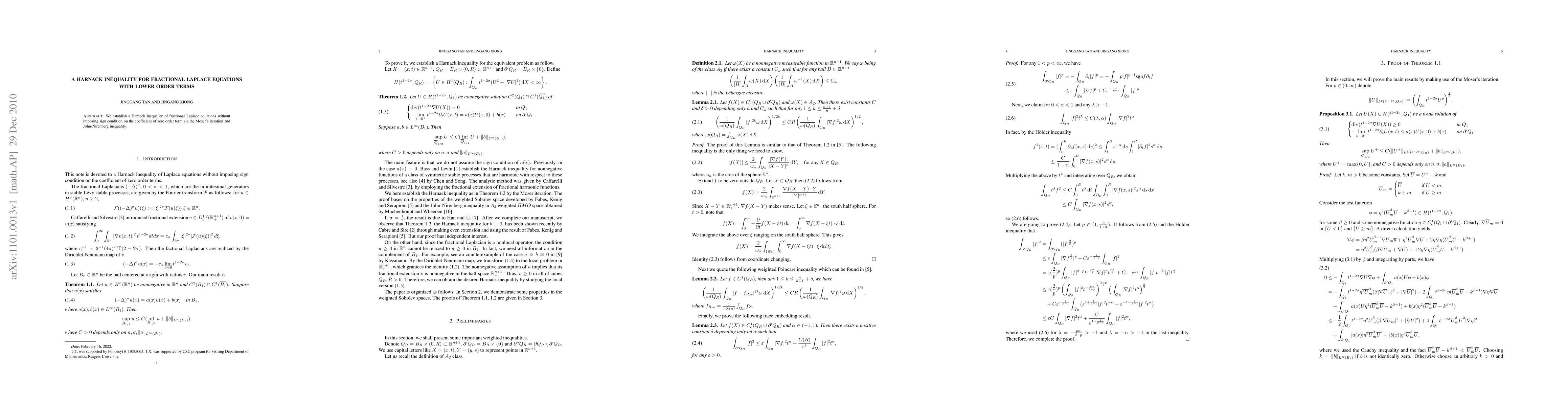 Summary: This paper establishes a Harnack inequality for fractional Laplace equations, including lower-order terms, without requiring a sign condition on the coefficient of the zero-order term, using Moser's iteration and John-Nirenberg inequality.