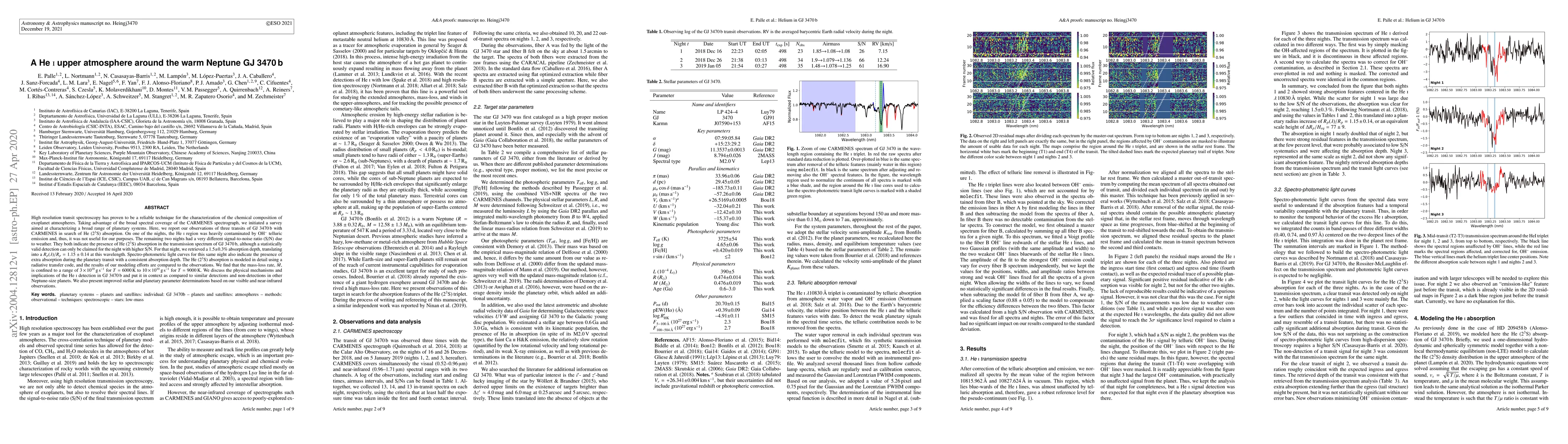 High resolution transit spectroscopy has proven to be a reliable technique for the characterization of the chemical composition of exoplanet atmospheres. Taking advantage of the broad spectral coverage of the CARMENES spectrograph, we initiated a survey aimed at characterizing a broad range of planetary systems. Here, we report our observations of three transits of \tplanet with CARMENES in search of \het\ absorption. On one of the nights, the He~{\sc i} region was heavily contaminated by OH$^-$ telluric emission and, thus, it was not useful for our purposes. The remaining two nights had a very different signal-to-noise ratio (S/N) due to weather. They both indicate the presence of \het\ absorption in the transmission spectrum of \tplanet, although a statistically valid detection can only be claimed for the night with higher S/N. For that night, we retrieved a 1.5$\pm$0.3\% absorption depth, translating into a $R_p(\lambda)/R_p = 1.15\pm 0.14$ at this wavelength. Spectro-photometric light curves for this same night also indicate the presence of extra absorption during the planetary transit with a consistent absorption depth. The \het\ absorption is modeled in detail using a radiative transfer code, and the results of our modeling efforts are compared to the observations. We find that the mass-loss rate, \mlr, is confined to a range of 3\,$\times\,10^{10}$\,\gs\ for $T$ = 6000\,K to 10\,$\times\,10^{10}$\,\gs\ for $T$ = 9000\,K. We discuss the physical mechanisms and implications of the He~{\sc i} detection in \tplanet and put it in context as compared to similar detections and non-detections in other Neptune-size planets. We also present improved stellar and planetary parameter determinations based on our visible and near-infrared observations.