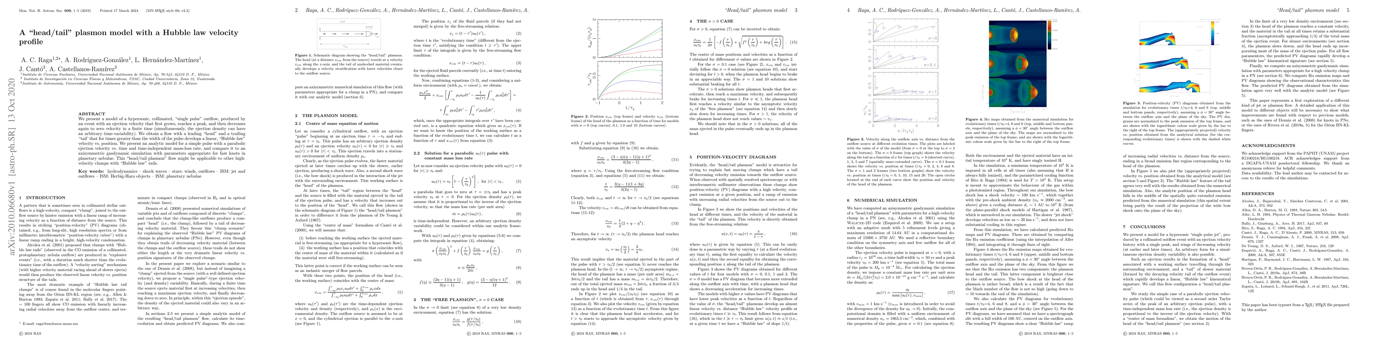 We present a model of a hypersonic, collimated, "single pulse" outflow, produced by an event with an ejection velocity that first grows, reaches a peak, and then decreases again to zero velocity in a finite time (simultaneously, the ejection density can have an arbitrary time-variability). We obtain a flow with a leading "head" and a trailing "tail" that for times greater than the width of the pulse develops a linear, "Hubble law" velocity vs. position. We present an analytic model for a simple pulse with a parabolic ejection velocity vs. time and time-independent mass-loss rate, and compare it to an axisymmetric gasdynamic simulation with parameters appropriate for fast knots in planetary nebulae. This "head/tail plasmon" flow might be applicable to other high-velocity clumps with "Hubble law" tails.