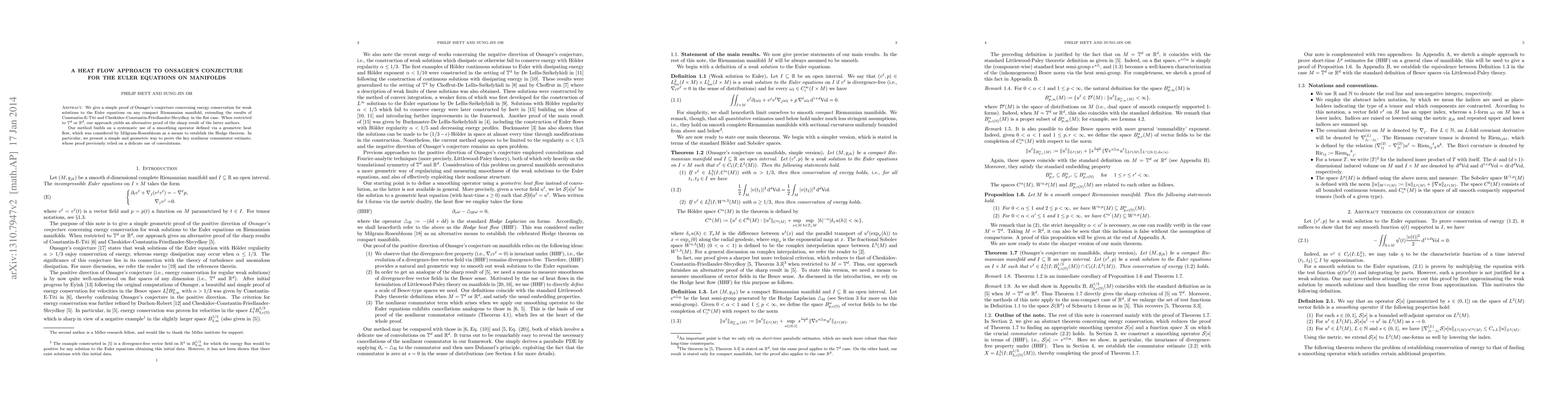 We give a simple proof of Onsager's conjecture concerning energy conservation for weak solutions to the Euler equations on any compact Riemannian manifold, extending the results of Constantin-E-Titi and Cheskidov-Constantin-Friedlander-Shvydkoy in the flat case. When restricted to $\mathbb{T}^{d}$ or $\mathbb{R}^{d}$, our approach yields an alternative proof of the sharp result of the latter authors. Our method builds on a systematic use of a smoothing operator defined via a geometric heat flow, which was considered by Milgram-Rosenbloom as a means to establish the Hodge theorem. In particular, we present a simple and geometric way to prove the key nonlinear commutator estimate, whose proof previously relied on a delicate use of convolutions.