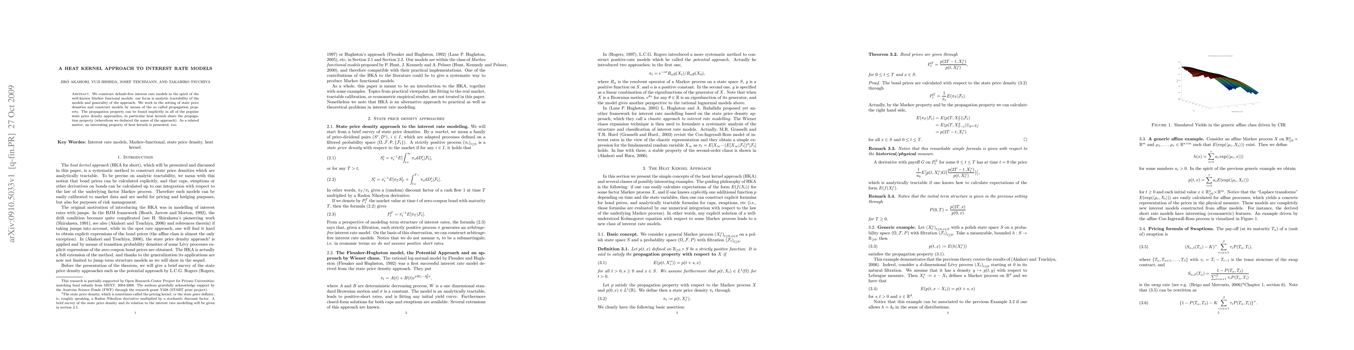 We construct default-free interest rate models in the spirit of the well-known Markov funcional models: our focus is analytic tractability of the models and generality of the approach. We work in the setting of state price densities and construct models by means of the so called propagation property. The propagation property can be found implicitly in all of the popular state price density approaches, in particular heat kernels share the propagation property (wherefrom we deduced the name of the approach). As a related matter, an interesting property of heat kernels is presented, too.