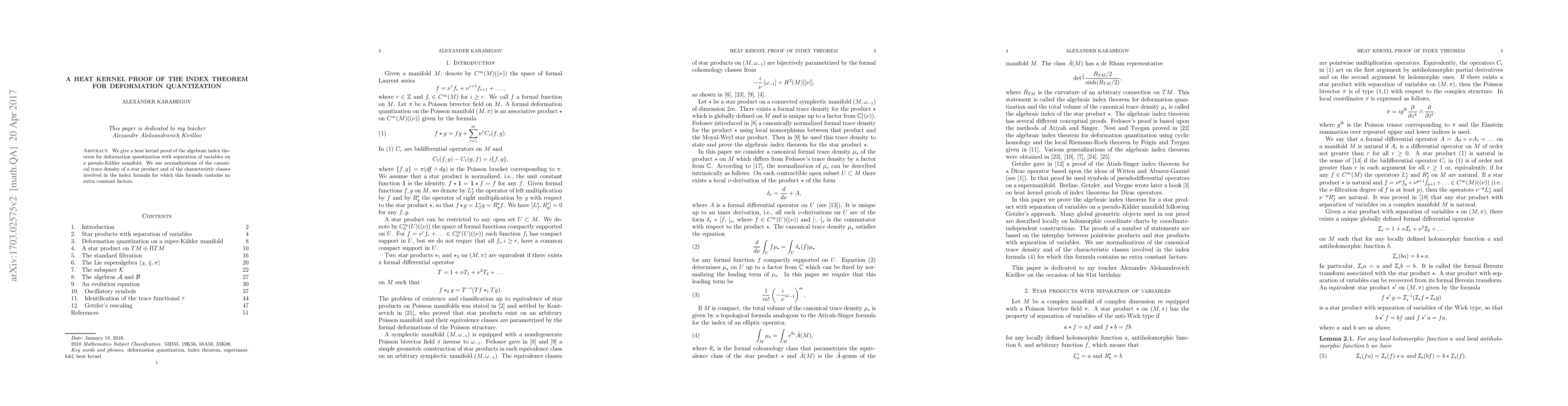 This paper presents a heat kernel proof of the algebraic index theorem for deformation quantization on a pseudo-Kähler manifold, utilizing normalizations that ensure no extra constant factors appear in the index formula. The method employs separation of variables and canonical trace density normalizations.