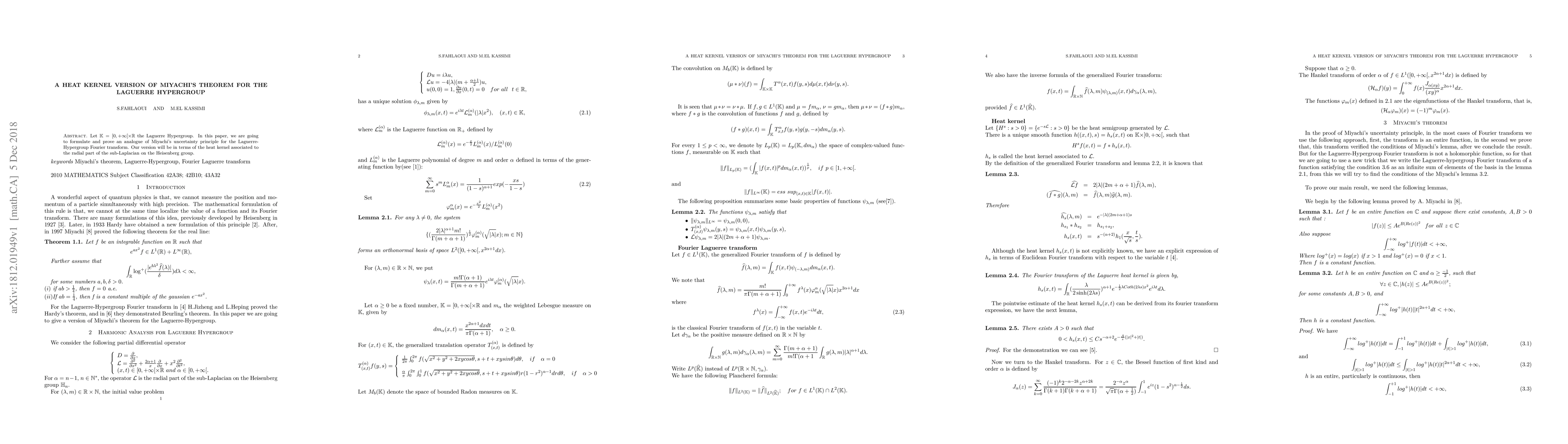 Let $\mathbb{K}=[0,+\infty[\times\mathbb{R}$ the Laguerre Hypergroup. In this paper, we are going to formulate and prove an analogue of Miyachi's uncertainty principle for the Laguerre-Hypergroup Fourier transform. Our version will be in terms of the heat kernel associated to the radial part of the sub-Laplacian on the Heisenberg group.