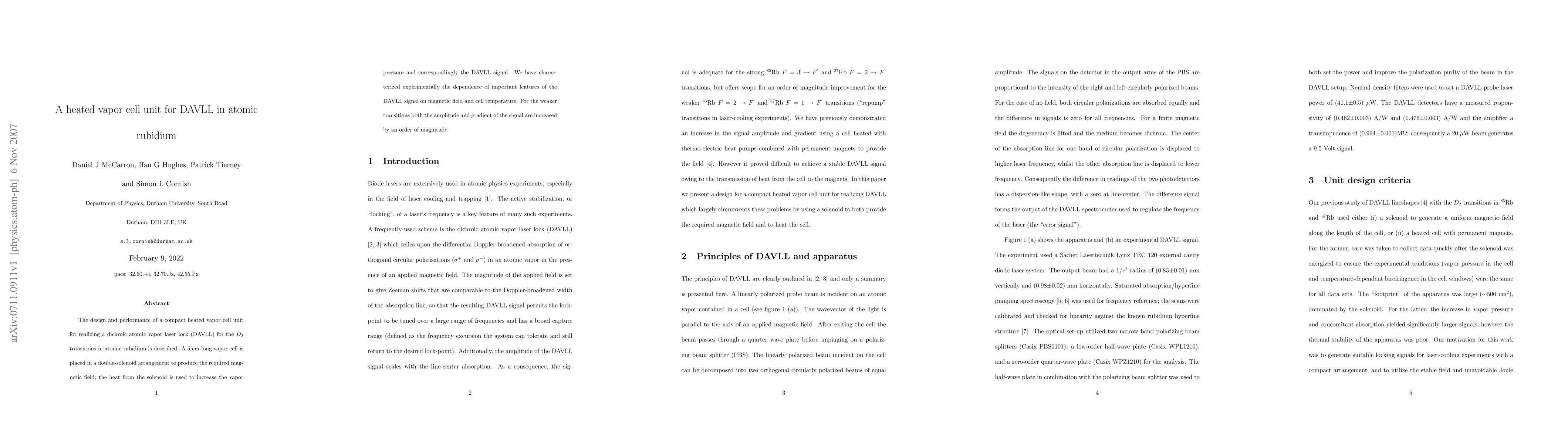 This research describes the design of a compact heated vapor cell for a dichroic atomic vapor laser lock (DAVLL) in rubidium, using a double-solenoid to generate a magnetic field. Experimental results show a significant increase in DAVLL signal amplitude and gradient by optimizing the vapor pressure through heating.