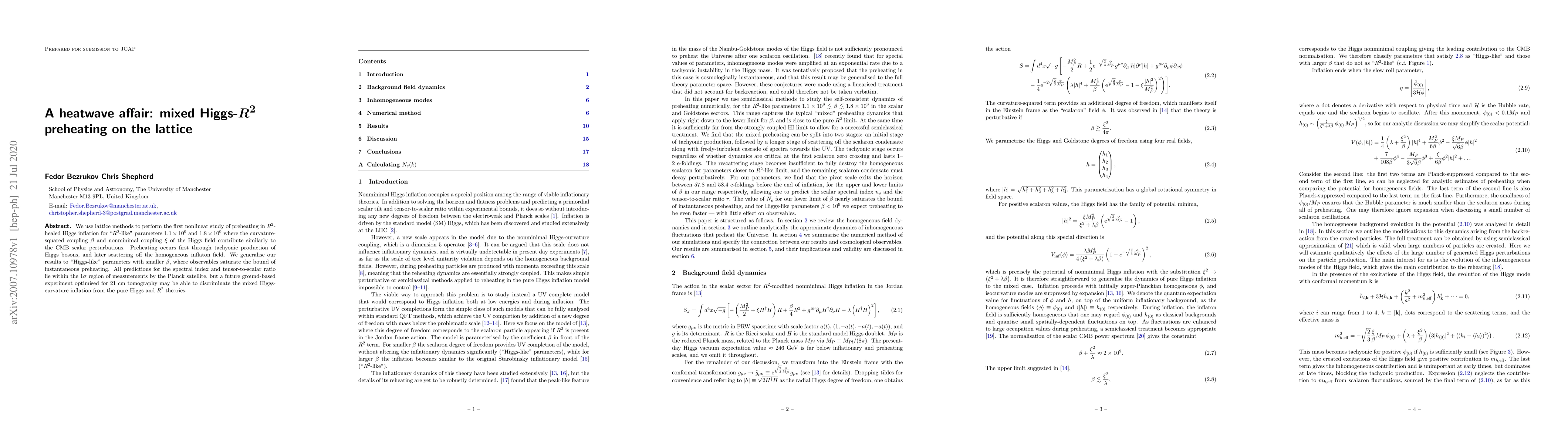 We use lattice methods to perform the first nonlinear study of preheating in $R^2$-healed Higgs inflation for "$R^2$-like" parameters $1.1\times 10^9$ and $1.8\times 10^9$ where the curvature-squared coupling $\beta$ and nonminimal coupling $\xi$ of the Higgs field contribute similarly to the CMB scalar perturbations. Preheating occurs first through tachyonic production of Higgs bosons, and later scattering off the homogeneous inflaton field. We generalise our results to "Higgs-like" parameters with smaller $\beta$, where observables saturate the bound of instantaneous preheating. All predictions for the spectral index and tensor-to-scalar ratio lie within the $1\sigma$ region of measurements by the Planck satellite, but a future ground-based experiment optimised for 21 cm tomography may be able to discriminate the mixed Higgs-curvature inflation from the pure Higgs and $R^2$ theories.