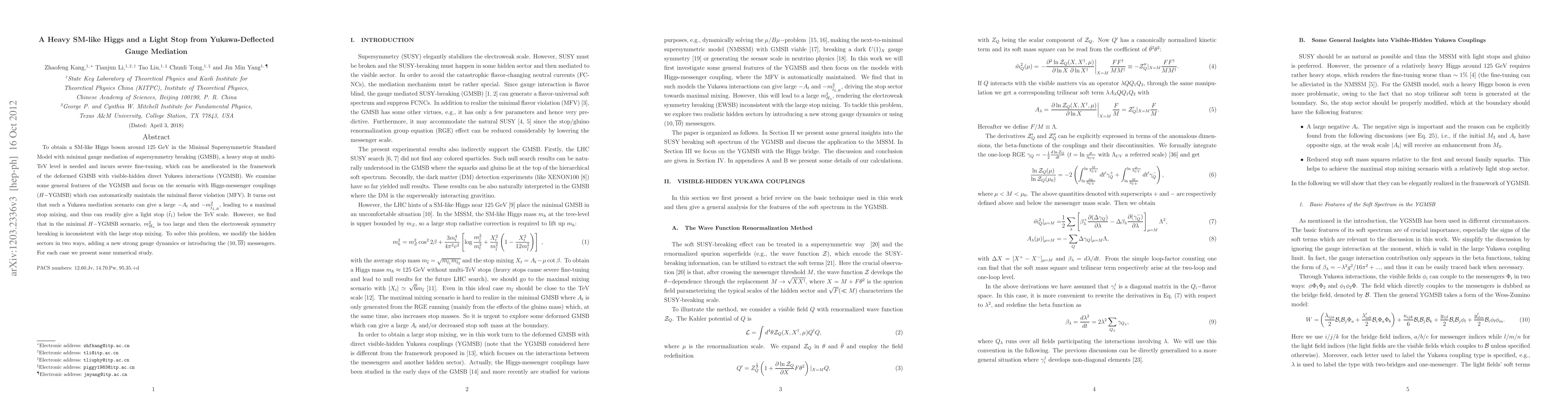 This paper explores Yukawa-deflected gauge mediation (YGMSB) in the Minimal Supersymmetric Standard Model (MSSM) to achieve a SM-like Higgs around 125 GeV with a light stop below the TeV scale. The study finds that the minimal H-YGMSB scenario leads to inconsistencies due to large stop mixing, which is resolved by modifying the hidden sectors through new strong gauge dynamics or introducing (10,10_bar) messengers.
