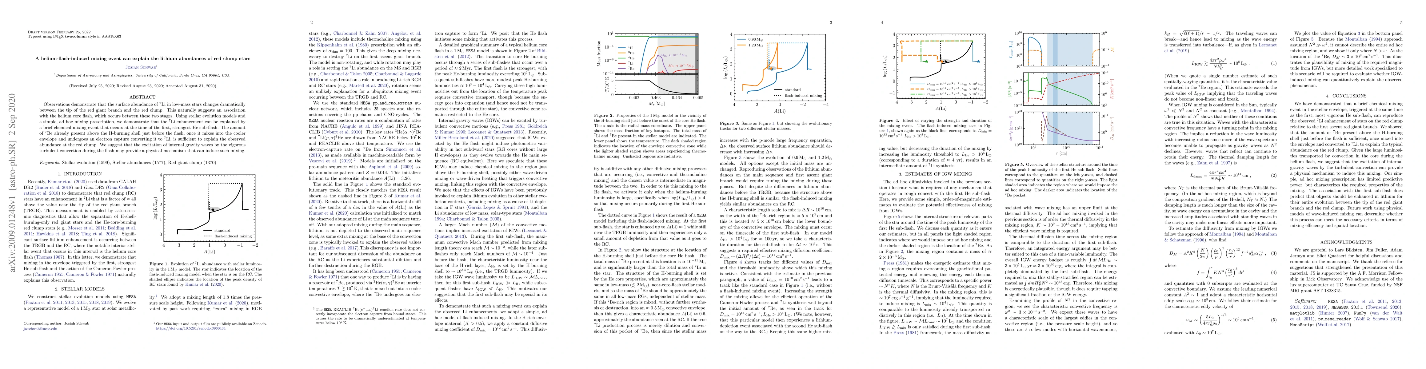 A helium-flash-induced mixing event can explain the lithium abundances of red clump stars by briefly mixing existing $^7{ m Be}$ into $^7{ m Li}$. This event is likely triggered by vigorous turbulent convection during the flash.