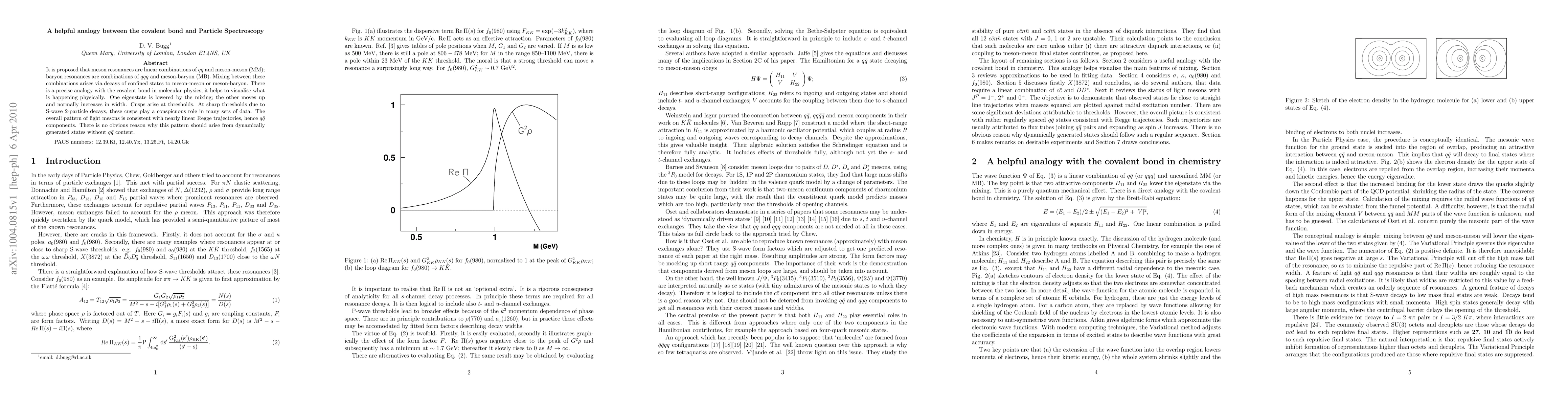 Researchers propose a covalent bond analogy for meson and baryon resonances, suggesting that mixing between combinations of particles increases one eigenstate while moving the other up in energy and width.