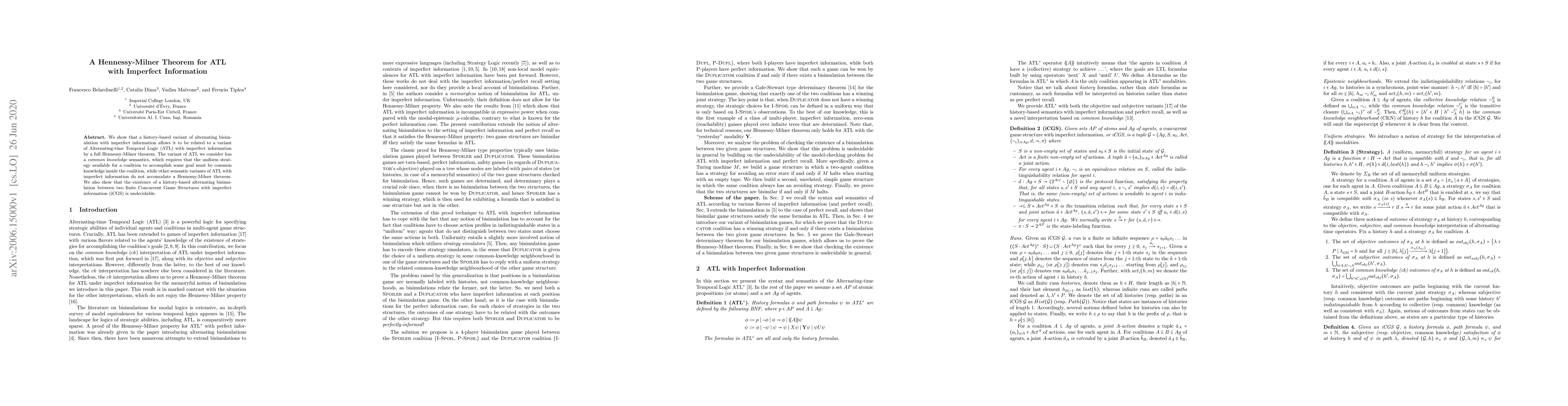We show that a history-based variant of alternating bisimulation with imperfect information allows it to be related to a variant of Alternating-time Temporal Logic (ATL) with imperfect information by a full Hennessy-Milner theorem. The variant of ATL we consider has a common knowledge semantics, which requires that the uniform strategy available for a coalition to accomplish some goal must be common knowledge inside the coalition, while other semantic variants of ATL with imperfect information do not accommodate a Hennessy-Milner theorem. We also show that the existence of a history-based alternating bisimulation between two finite Concurrent Game Structures with imperfect information (iCGS) is undecidable.