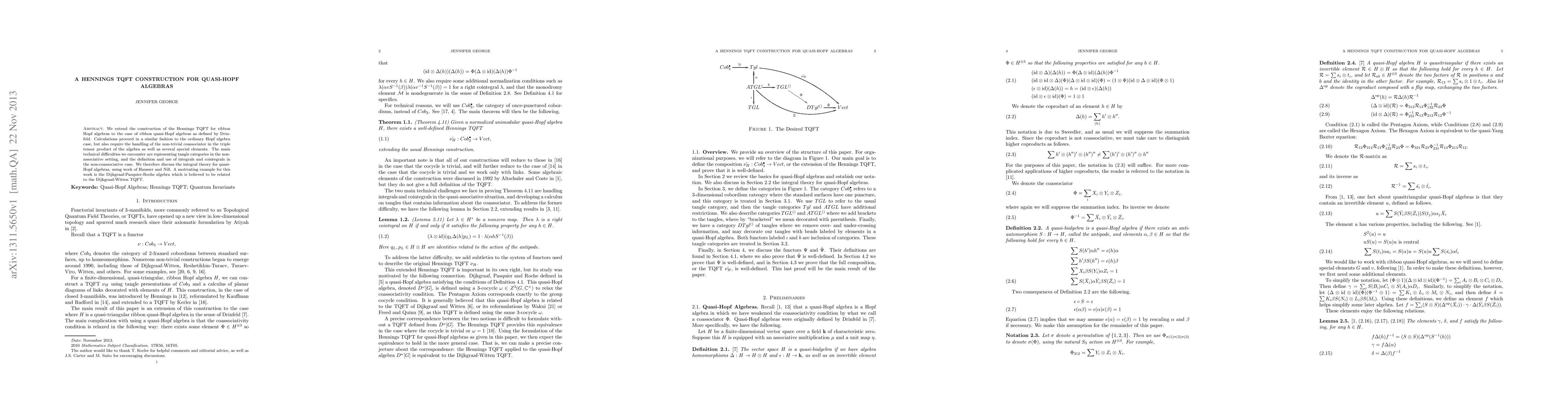 The extension of the Hennings TQFT construction to ribbon quasi-Hopf algebras is a novel contribution to the field.