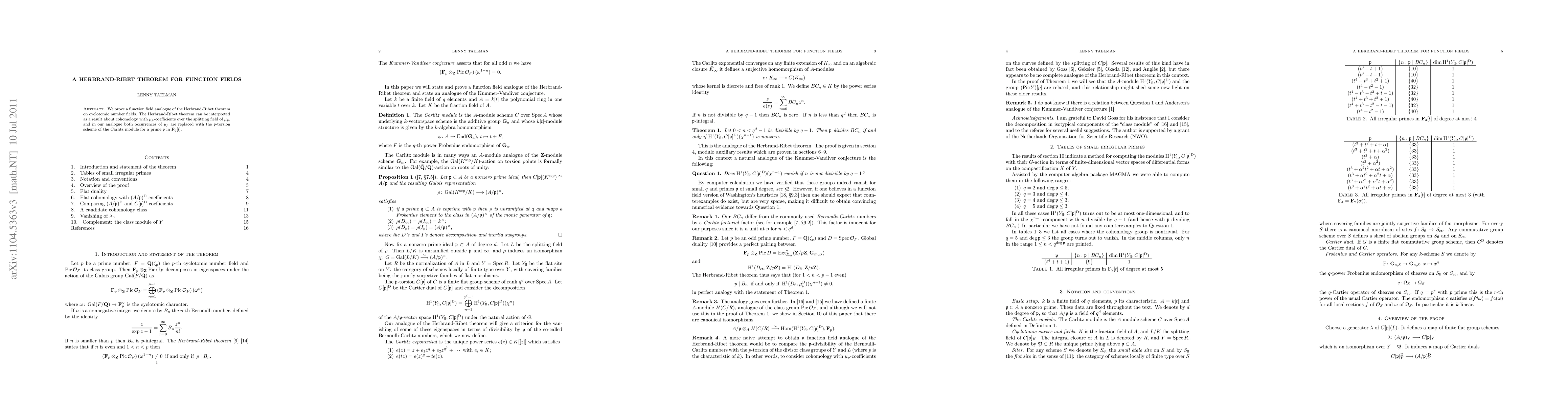 We prove a function field analogue of the Herbrand-Ribet theorem on cyclotomic number fields. The Herbrand-Ribet theorem can be interpreted as a result about cohomology with $\mu_p$-coefficients over the splitting field of $\mu_p$, and in our analogue both occurrences of $\mu_p$ are replaced with the $\mathfrak{p}$-torsion scheme of the Carlitz module for a prime $\mathfrak{p}$ in $\F_q[t]$.