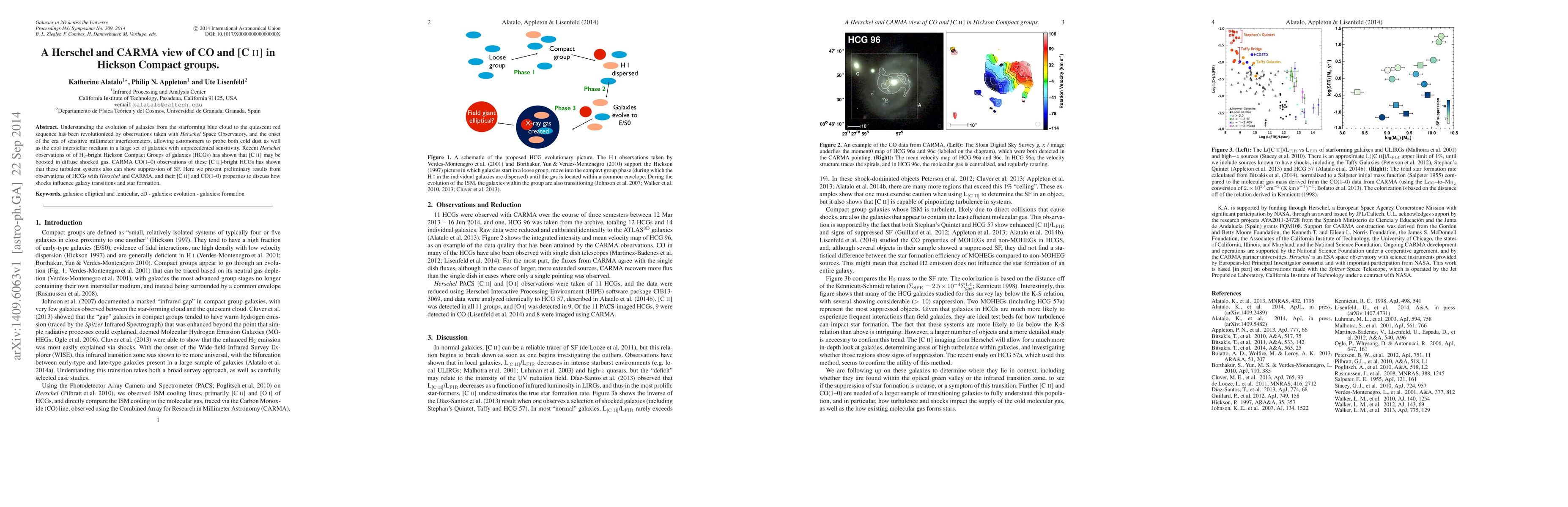 Understanding the evolution of galaxies from the starforming blue cloud to the quiescent red sequence has been revolutionized by observations taken with Herschel Space Observatory, and the onset of the era of sensitive millimeter interferometers, allowing astronomers to probe both cold dust as well as the cool interstellar medium in a large set of galaxies with unprecedented sensitivity. Recent Herschel observations of of H2-bright Hickson Compact Groups of galaxies (HCGs) has shown that [CII] may be boosted in diffuse shocked gas. CARMA CO(1-0) observations of these [CII]-bright HCGs has shown that these turbulent systems also can show suppression of SF. Here we present preliminary results from observations of HCGs with Herschel and CARMA, and their [CII] and CO(1-0) properties to discuss how shocks influence galaxy transitions and star formation.