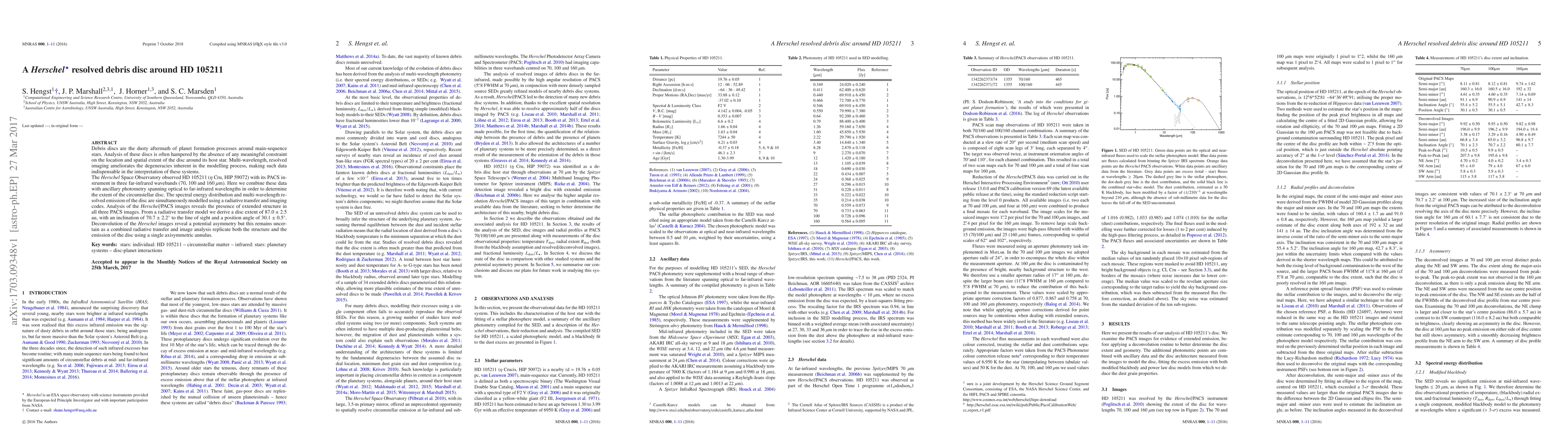 The Herschel Space Observatory has resolved the debris disc around HD 105211, revealing an extended, axisymmetric circumstellar disc with an extent of 87.0 +/- 2.5 au, inclined at 70.7 +/- 2.2 degrees to the line of sight. While the data suggest potential asymmetry, a single axisymmetric model fits the disc's structure and emission well.