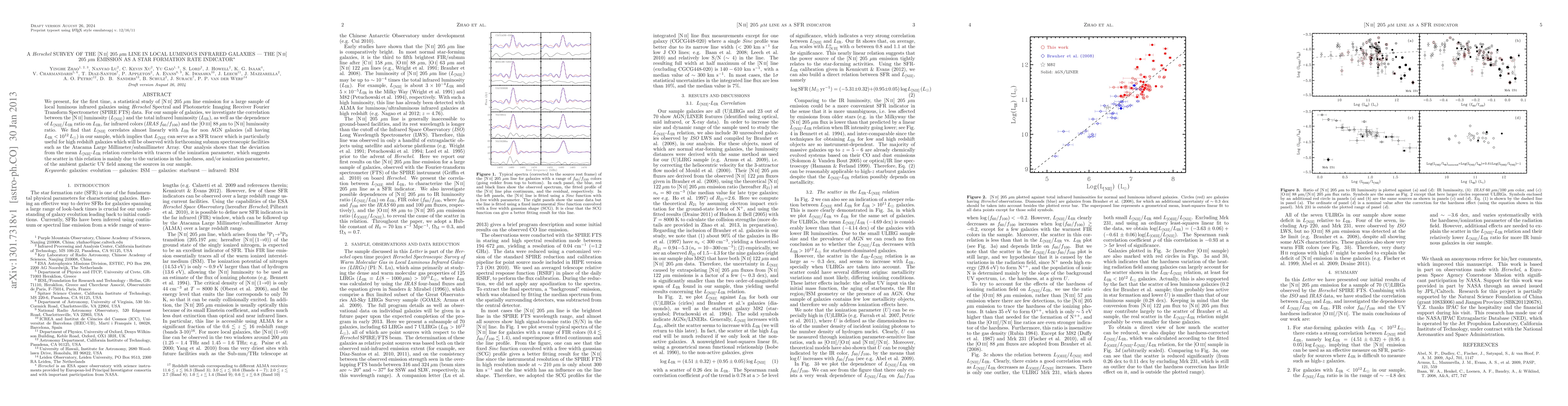 We present, for the first time, a statistical study of [N II] 205 mciron line emission for a large sample of local luminous infrared galaxies using Herschel Spectral and Photometric Imaging Receiver Fourier Transform Spectrometer (SPIRE FTS) data. For our sample of galaxies, we investigate the correlation between the [N II] luminosity (LNII) and the total infrared luminosity (LIR), as well as the dependence of LNII/LIR ratio on LIR, far infrared colors (IRAS $f_{60}/f_{100}$) and the [O III] 88 micron to [N II] luminosity ratio. We find that LNII correlates almost linearly with LIR for non AGN galaxies (all having $L_{IR} < 10^{12} L_solar$) in our sample, which implies that LNII can serve as a SFR tracer which is particularly useful for high redshift galaxies which will be observed with forthcoming submm spectroscopic facilities such as the Atacama Large Millimeter/submillimeter Array. Our analysis shows that the deviation from the mean LNII-LIR relation correlates with tracers of the ionization parameter, which suggests the scatter in this relation is mainly due to the variations in the hardness, and/or ionization parameter, of the ambient galactic UV field among the sources in our sample.