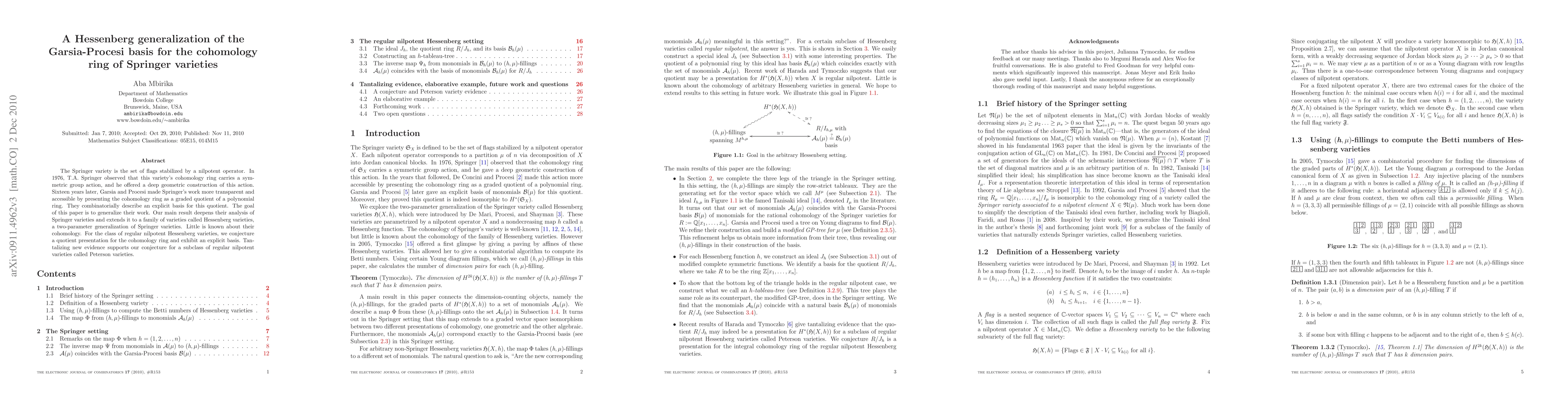 The Springer variety is the set of flags stabilized by a nilpotent operator. In 1976, T.A. Springer observed that this variety's cohomology ring carries a symmetric group action, and he offered a deep geometric construction of this action. Sixteen years later, Garsia and Procesi made Springer's work more transparent and accessible by presenting the cohomology ring as a graded quotient of a polynomial ring. They combinatorially describe an explicit basis for this quotient. The goal of this paper is to generalize their work. Our main result deepens their analysis of Springer varieties and extends it to a family of varieties called Hessenberg varieties, a two-parameter generalization of Springer varieties. Little is known about their cohomology. For the class of regular nilpotent Hessenberg varieties, we conjecture a quotient presentation for the cohomology ring and exhibit an explicit basis. Tantalizing new evidence supports our conjecture for a subclass of regular nilpotent varieties called Peterson varieties.