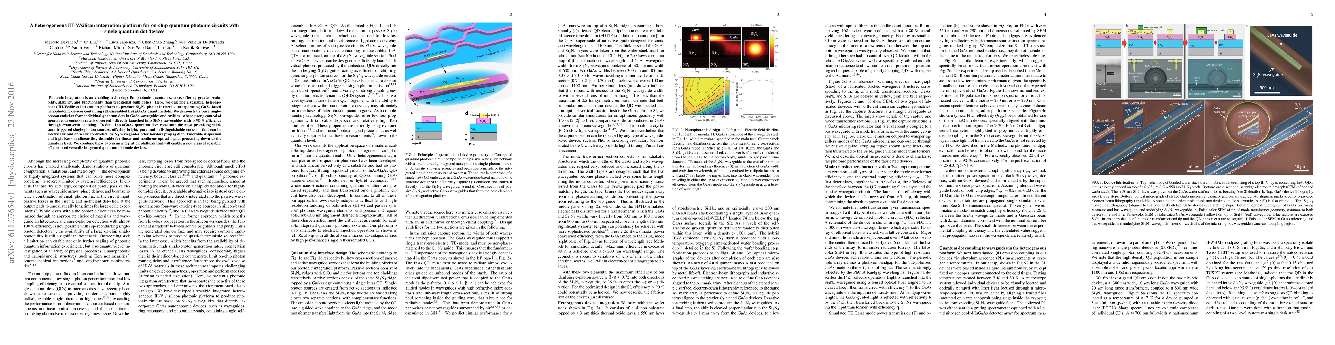 This research develops a scalable III-V/silicon integration platform for on-chip quantum photonic circuits, featuring self-assembled InAs/GaAs quantum dots in GaAs nanophotonic devices coupled with Si$_3$N$_4$ photonic circuits, demonstrating efficient single-photon emission integration. The combination promises scalable, efficient, and versatile integrated quantum photonic devices.