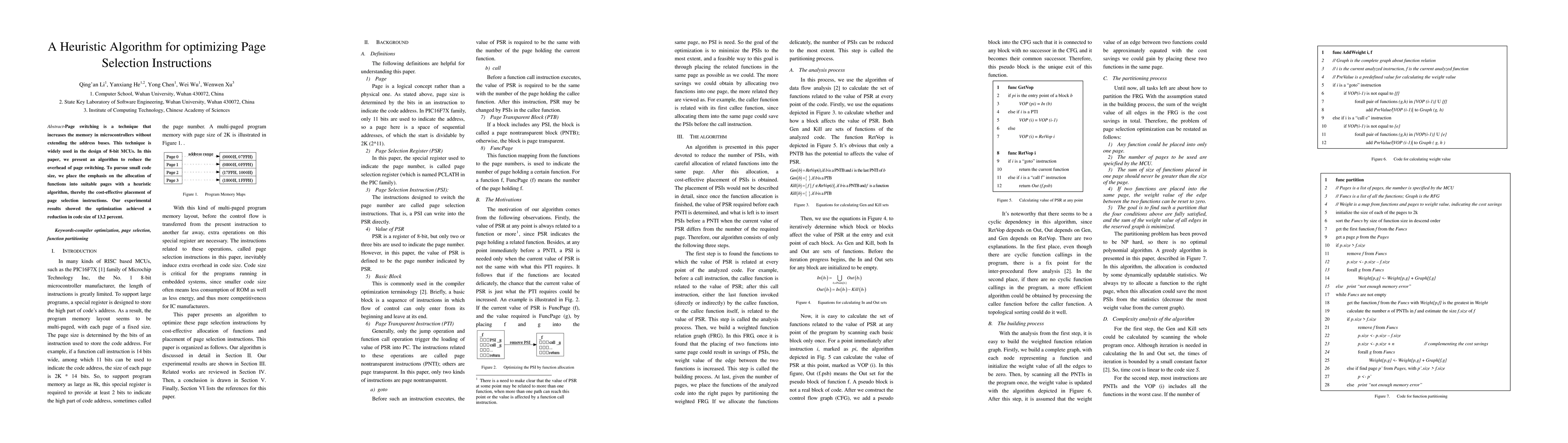Researchers developed an algorithm to optimize page selection instructions in microcontrollers, reducing code size by 13.2%. The approach focuses on function placement using a heuristic algorithm.