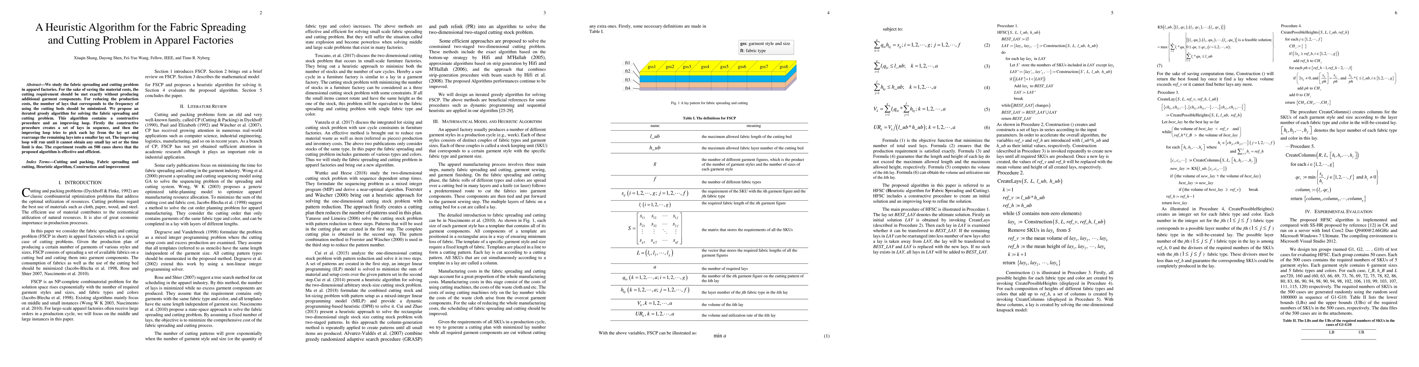 We study the fabric spreading and cutting problem in apparel factories. For the sake of saving the material costs, the cutting requirement should be met exactly without producing additional garment components. For reducing the production costs, the number of lays that corresponds to the frequency of using the cutting beds should be minimized. We propose an iterated greedy algorithm for solving the fabric spreading and cutting problem. This algorithm contains a constructive procedure and an improving loop. Firstly the constructive procedure creates a set of lays in sequence, and then the improving loop tries to pick each lay from the lay set and rearrange the remaining lays into a smaller lay set. The improving loop will run until it cannot obtain any small lay set or the time limit is due. The experiment results on 500 cases shows that the proposed algorithm is effective and efficient.