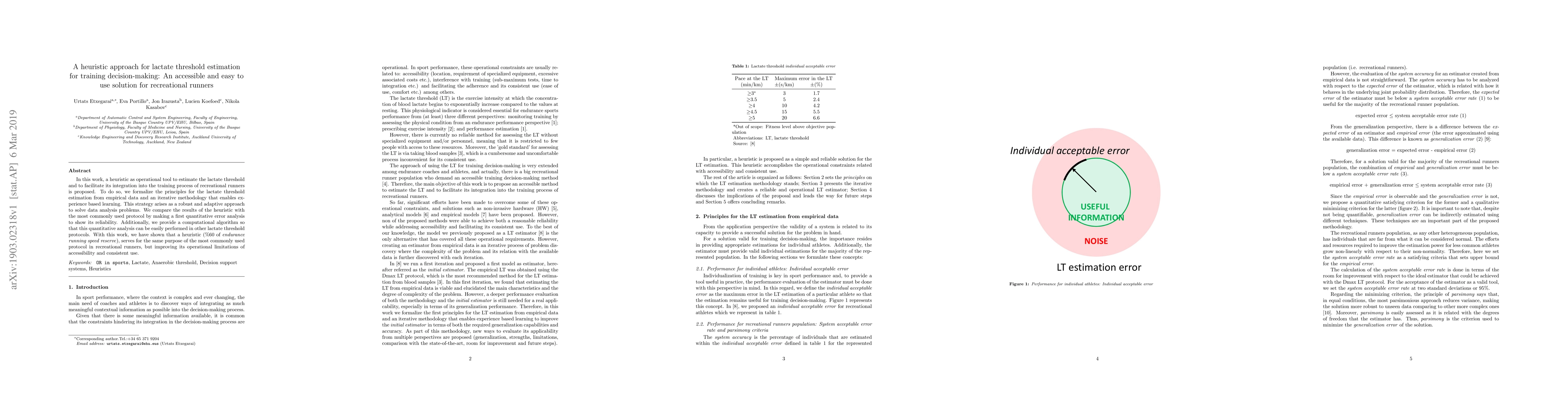 This paper proposes a heuristic method for estimating the lactate threshold in recreational runners, aiming to enhance training decision-making. The heuristic, based on empirical data and iterative learning, is shown to be reliable and comparable to traditional protocols, offering an accessible and adaptive solution for practical use.