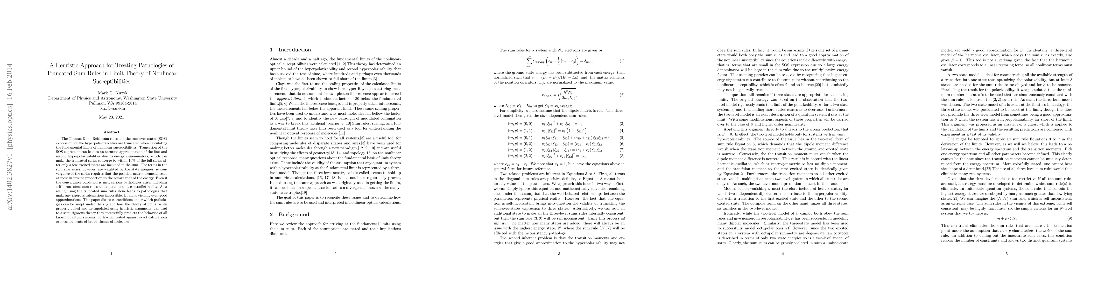 The Thomas Kuhn Reich sum rules and the sum-over-states (SOS) expression for the hyperpolarizabilities are truncated when calculating the fundamental limits of nonlinear susceptibilities. Truncation of the SOS expression can lead to an accurate approximation of the first and second hyperpolarizabilities due to energy denominators, which can make the truncated series converge to within 10% of the full series after only a few excited states are included in the sum. The terms in the sum rule series, however, are weighted by the state energies, so convergence of the series requires that the position matrix elements scale at most in inverse proportion to the square root of the energy. Even if the convergence condition is met, serious pathologies arise, including self inconsistent sum rules and equations that contradict reality. As a result, using the truncated sum rules alone leads to pathologies that make any rigorous calculations impossible, let alone yielding even good approximations. This paper discusses conditions under which pathologies can be swept under the rug and how the theory of limits, when properly culled and extrapolated using heuristic arguments, can lead to a semi-rigorous theory that successfully predicts the behavior of all known quantum systems, both when tested against exact calculations or measurements of broad classes of molecules.