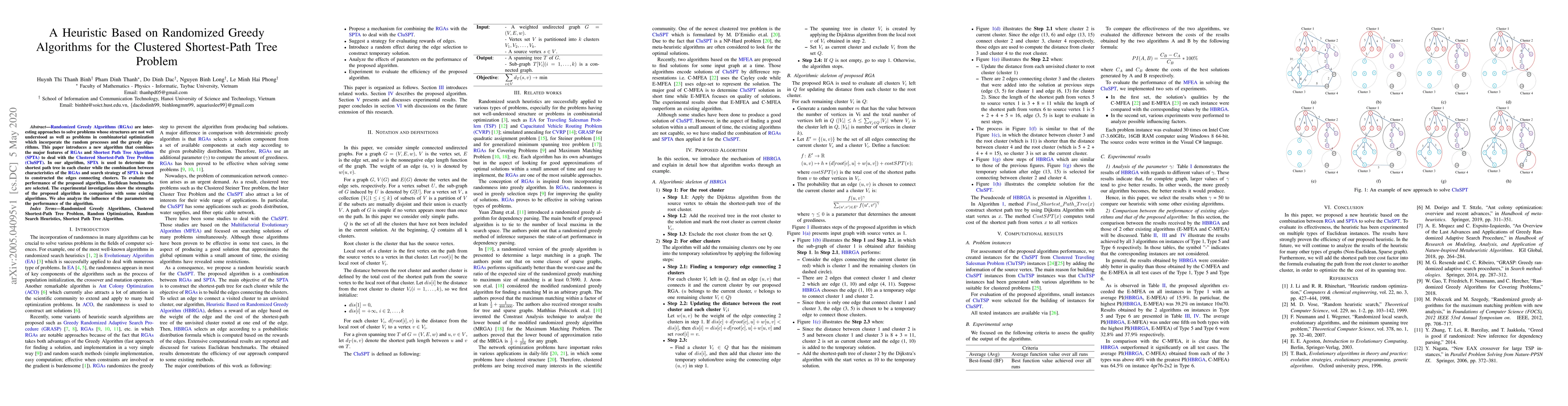 This paper proposes a novel heuristic algorithm combining Randomized Greedy Algorithms (RGAs) with the Shortest Path Tree Algorithm (SPTA) to tackle the Clustered Shortest-Path Tree Problem (CluSPT). The algorithm uses SPTA for intra-cluster paths and integrates RGAs for inter-cluster edge connections, demonstrating superior performance on Euclidean benchmarks compared to existing methods.