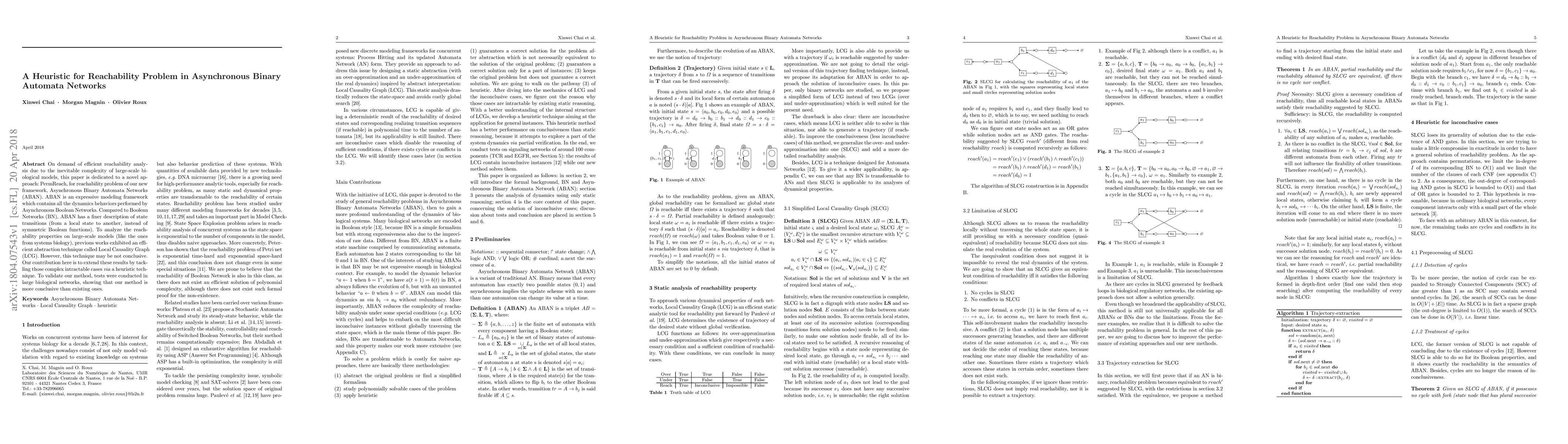 This paper introduces PermReach, a heuristic for analyzing the reachability problem in Asynchronous Binary Automata Networks (ABAN), a framework that offers a finer description of state transitions compared to Boolean Networks. The proposed method extends previous efficient abstraction techniques, particularly Local Causality Graph, to handle complex, intractable cases, demonstrating improved conclusiveness in large biological networks.