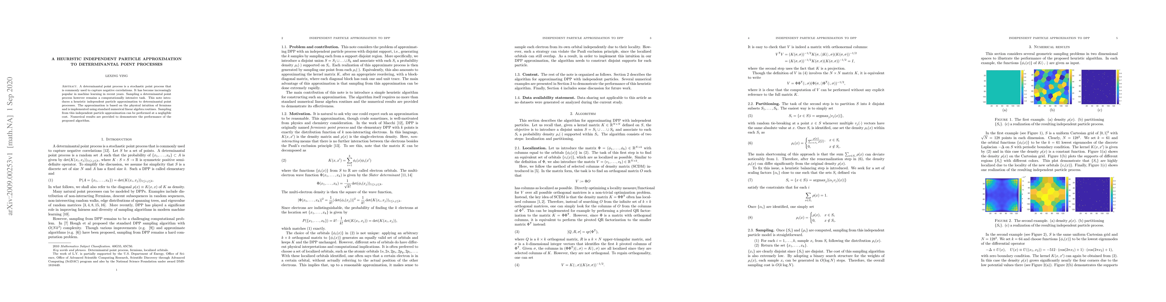 This paper proposes a heuristic independent particle approximation for determinantal point processes, leveraging the physical intuition of fermions to simplify sampling. The method significantly reduces computational cost and is demonstrated to perform well through numerical results.