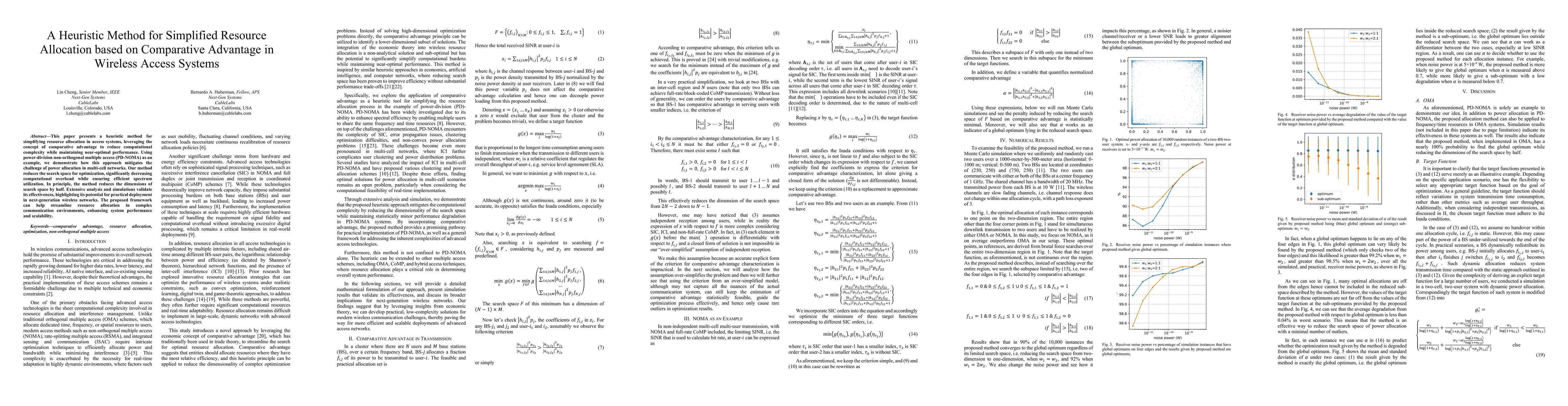 This paper presents a heuristic method for simplifying resource allocation in access systems, leveraging the concept of comparative advantage to reduce computational complexity while maintaining near-optimal performance. Using power-division non-orthogonal multiple access (PD-NOMA) as an example, we demonstrate how this approach mitigates the challenge of power allocation in multi-cell networks. Our method reduces the search space for optimization, significantly decreasing computational overhead while ensuring efficient spectrum utilization. In principle, the method reduces the dimensions of search space by half. Extensive analysis and simulations validate its effectiveness, highlighting its potential for practical deployment in next-generation wireless networks. The proposed framework can help streamline resource allocation in complex communication environments, enhancing system performance and scalability.