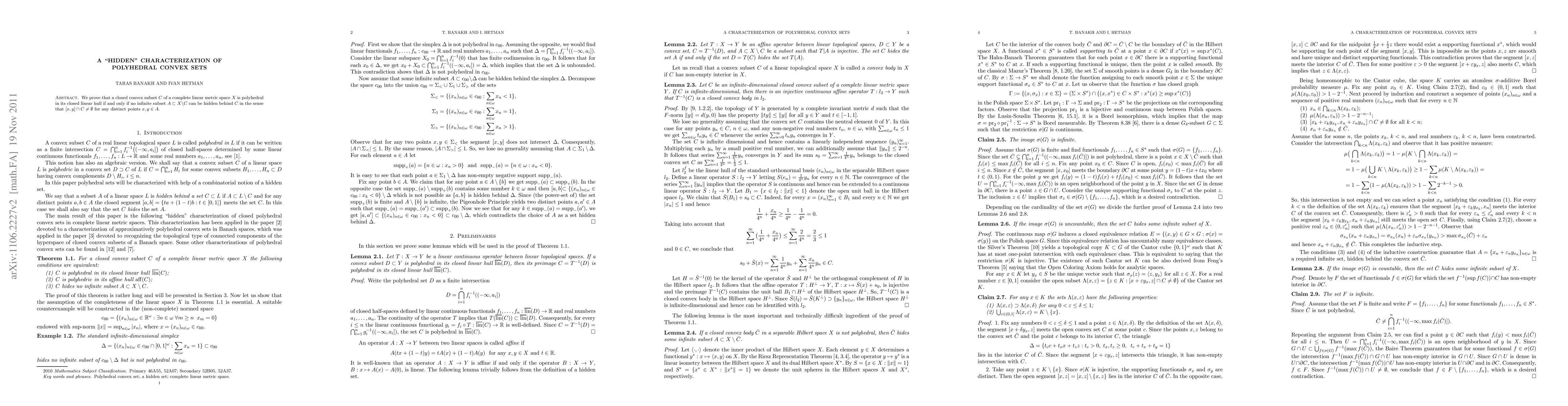 We prove that a closed convex subset $C$ of a complete linear metric space $X$ is polyhedral in its closed linear hull if and only if no infinite subset $A\subset X\backslash C$ can be hidden behind $C$ in the sense $[x,y]\cap C\not = \emptyset$ for any distinct points $x,y\in A$.
