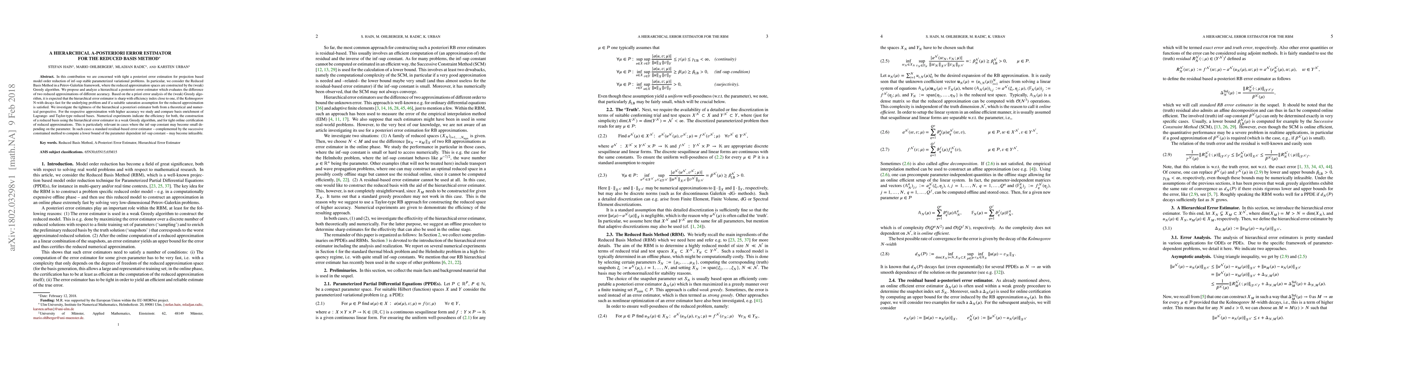 In this contribution we are concerned with tight a posteriori error estimation for projection based model order reduction of $\inf$-$\sup$ stable parameterized variational problems. In particular, we consider the Reduced Basis Method in a Petrov-Galerkin framework, where the reduced approximation spaces are constructed by the (weak) Greedy algorithm. We propose and analyze a hierarchical a posteriori error estimator which evaluates the difference of two reduced approximations of different accuracy. Based on the a priori error analysis of the (weak) Greedy algorithm, it is expected that the hierarchical error estimator is sharp with efficiency index close to one, if the Kolmogorov N-with decays fast for the underlying problem and if a suitable saturation assumption for the reduced approximation is satisfied. We investigate the tightness of the hierarchical a posteriori estimator both from a theoretical and numerical perspective. For the respective approximation with higher accuracy we study and compare basis enrichment of Lagrange- and Taylor-type reduced bases. Numerical experiments indicate the efficiency for both, the construction of a reduced basis using the hierarchical error estimator in a weak Greedy algorithm, and for tight online certification of reduced approximations. This is particularly relevant in cases where the $\inf$-$\sup$ constant may become small depending on the parameter. In such cases a standard residual-based error estimator -- complemented by the successive constrained method to compute a lower bound of the parameter dependent $\inf$-$\sup$ constant -- may become infeasible.