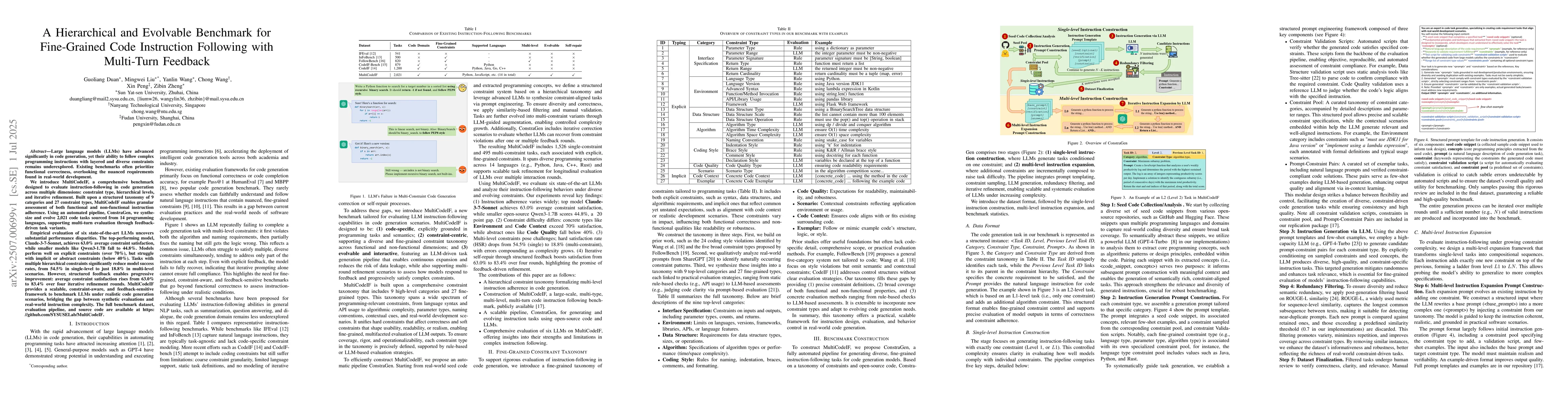 The research introduces MultiCodeIF, a detailed benchmark to assess large language models' ability to follow complex programming instructions with diverse constraints. It reveals significant performance gaps among state-of-the-art models, with top performer Claude-3-7-Sonnet achieving 63.0% average constraint satisfaction. The benchmark, which includes multi-turn evaluation through feedback-driven task variants, highlights models' struggle with implicit or abstract constraints and multiple hierarchical constraints. However, structured feedback improves performance significantly.