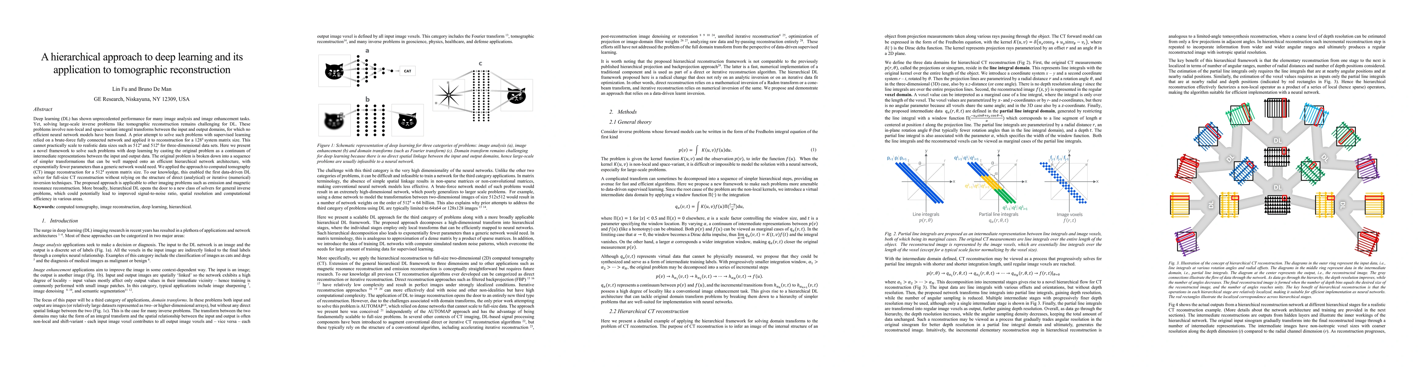 This paper introduces a hierarchical deep learning framework to tackle large-scale tomographic reconstruction problems, breaking down complex transformations into simpler, scalable network layers. The approach enables efficient full-size CT reconstruction without relying on traditional inversion techniques, potentially improving signal-to-noise ratio and computational efficiency.