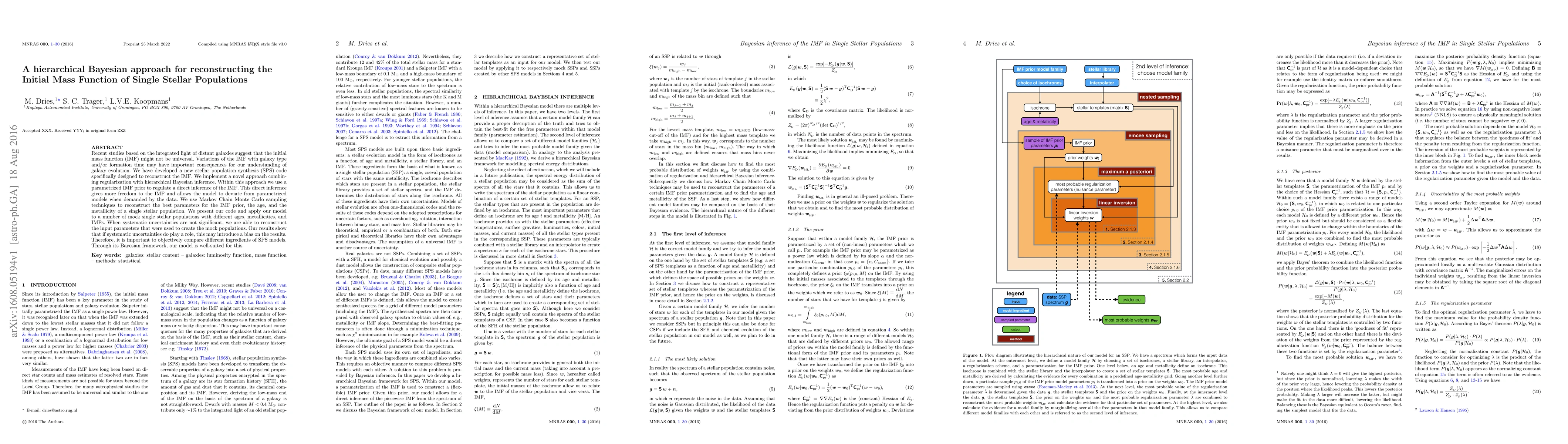 This paper introduces a hierarchical Bayesian method for reconstructing the initial mass function (IMF) of single stellar populations, combining regularization with Bayesian inference to allow for deviations from parametrized models when data demands. The authors demonstrate the effectiveness of their approach using mock populations, highlighting the importance of accounting for systematic uncertainties to avoid biases.