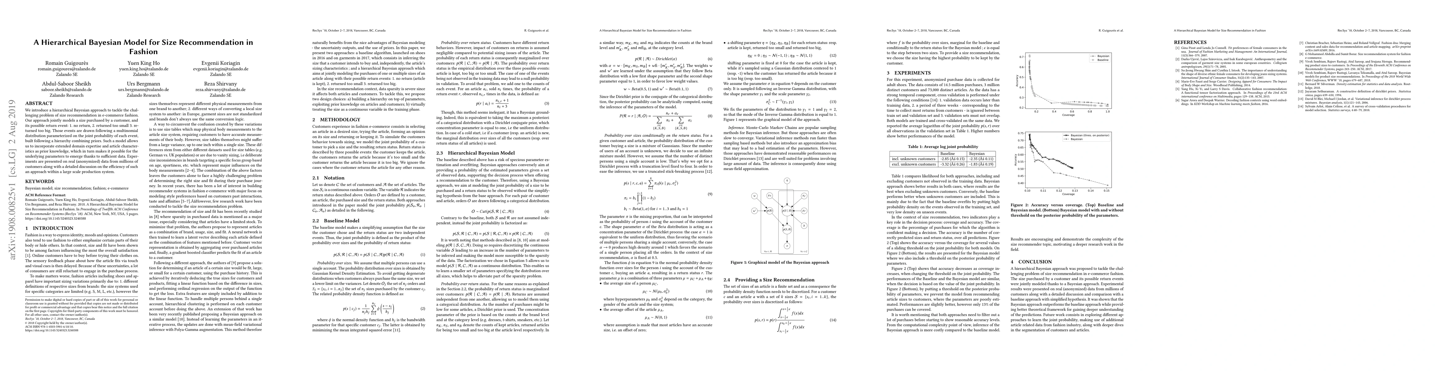 A hierarchical Bayesian model is introduced for size recommendation in e-commerce fashion, jointly modeling customer purchases and returns to incorporate domain expertise and article characteristics. Experiments using real data from millions of customers demonstrate the efficiency of this approach within large-scale production systems.