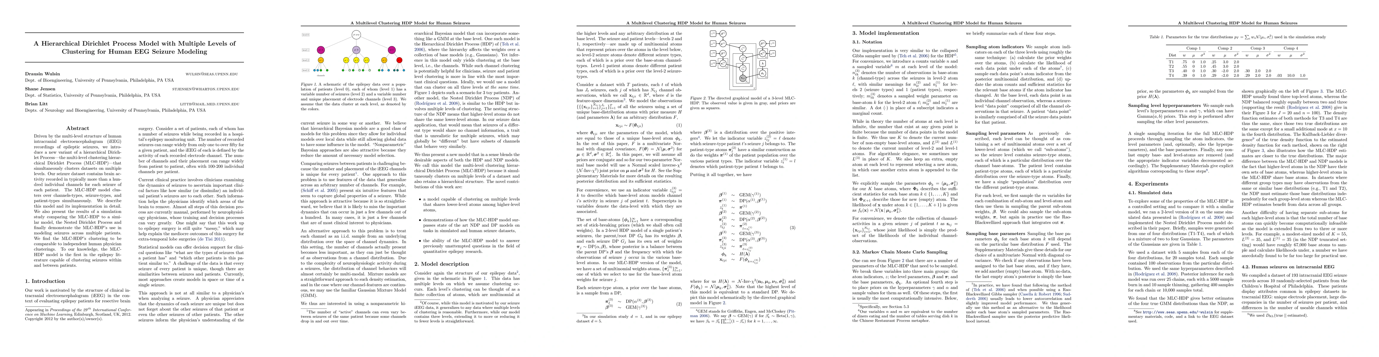 This paper introduces a multi-level clustering hierarchical Dirichlet Process (MLC-HDP) model to simultaneously cluster human intracranial EEG recordings of epileptic seizures across channels, seizure types, and patient types. The MLC-HDP model is compared to the Nested Dirichlet Process and shown to cluster seizures comparably to independent human physician clusterings.