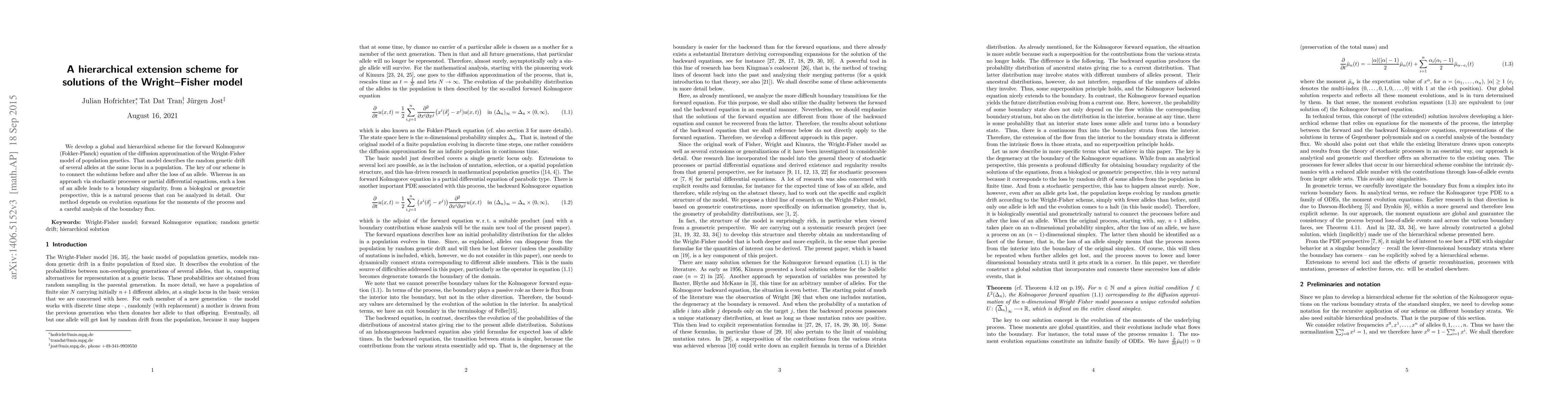We develop a global and hierarchical scheme for the forward Kolmogorov (Fokker-Planck) equation of the diffusion approximation of the Wright-Fisher model of population genetics. That model describes the random genetic drift of several alleles at the same locus in a population. The key of our scheme is to connect the solutions before and after the loss of an allele. Whereas in an approach via stochastic processes or partial differential equations, such a loss of an allele leads to a boundary singularity, from a biological or geometric perspective, this is a natural process that can be analyzed in detail. Our method depends on evolution equations for the moments of the process and a careful analysis of the boundary flux.