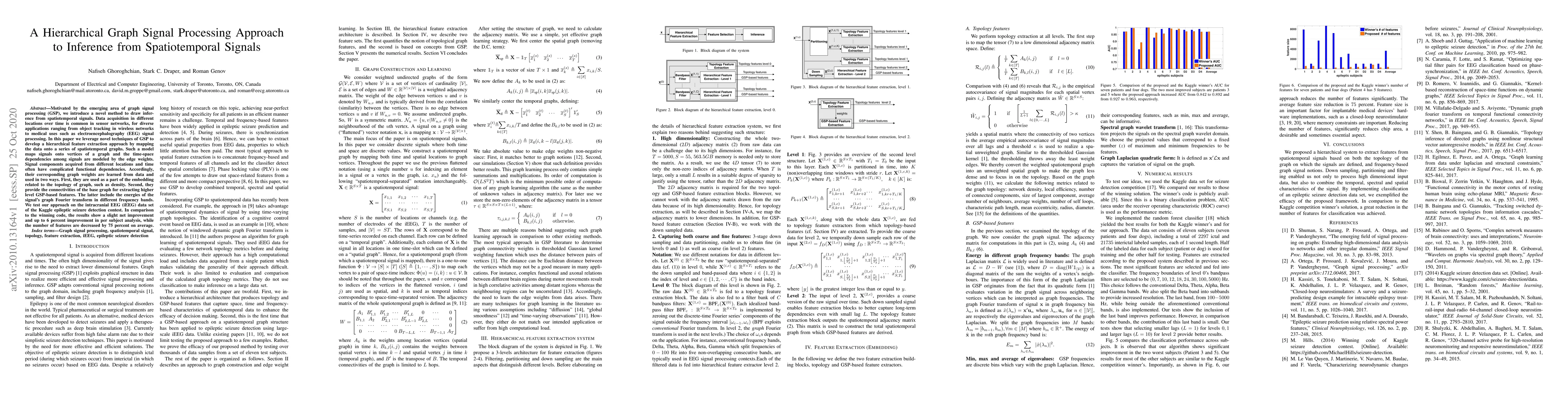 This paper proposes a hierarchical graph signal processing method for inferring spatiotemporal signals, utilizing graph Fourier transform features and learned edge weights from sensor networks. The approach shows slight improvements over the winning method in epileptic seizure detection from iEEG data, with a significant reduction in feature count.