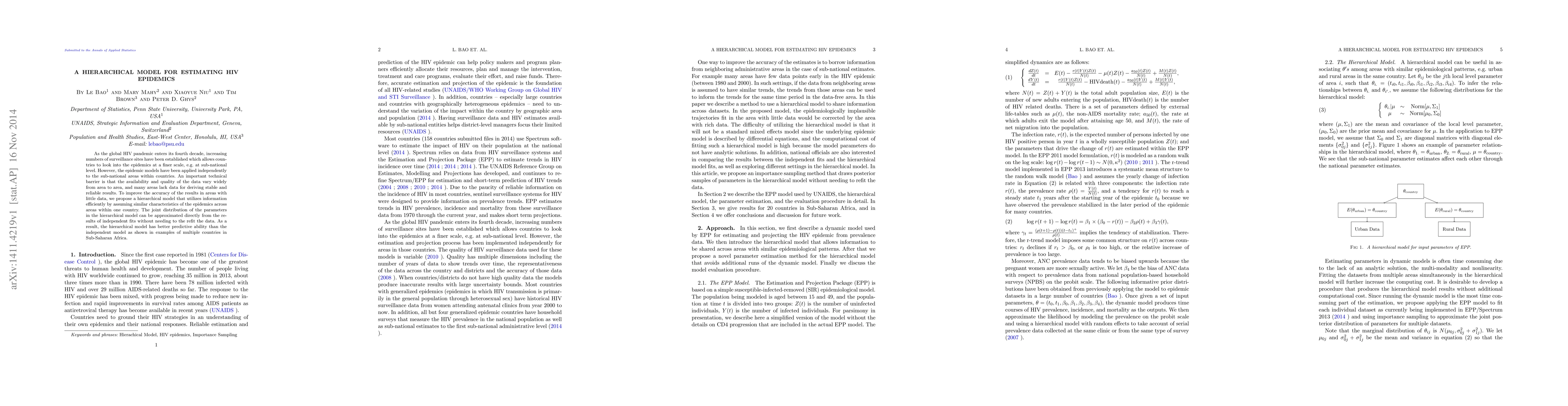 This paper proposes a hierarchical model for estimating HIV epidemics that leverages data from sub-national areas within countries, improving accuracy in regions with sparse data by assuming similar epidemic characteristics across areas. The model's predictive ability is demonstrated to be superior to independent models through examples in Sub-Saharan Africa.
