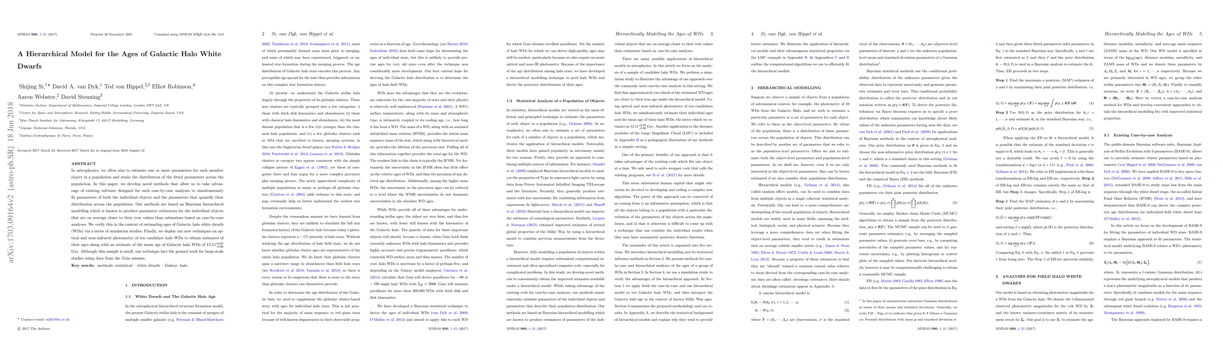 In astrophysics, we often aim to estimate one or more parameters for each member object in a population and study the distribution of the fitted parameters across the population. In this paper, we develop novel methods that allow us to take advantage of existing software designed for such case-by-case analyses to simultaneously fit parameters of both the individual objects and the parameters that quantify their distribution across the population. Our methods are based on Bayesian hierarchical modelling which is known to produce parameter estimators for the individual objects that are on average closer to their true values than estimators based on case-by-case analyses. We verify this in the context of estimating ages of Galactic halo white dwarfs (WDs) via a series of simulation studies. Finally, we deploy our new techniques on optical and near-infrared photometry of ten candidate halo WDs to obtain estimates of their ages along with an estimate of the mean age of Galactic halo WDs of [11.25, 12.96] Gyr. Although this sample is small, our technique lays the ground work for large-scale studies using data from the Gaia mission.