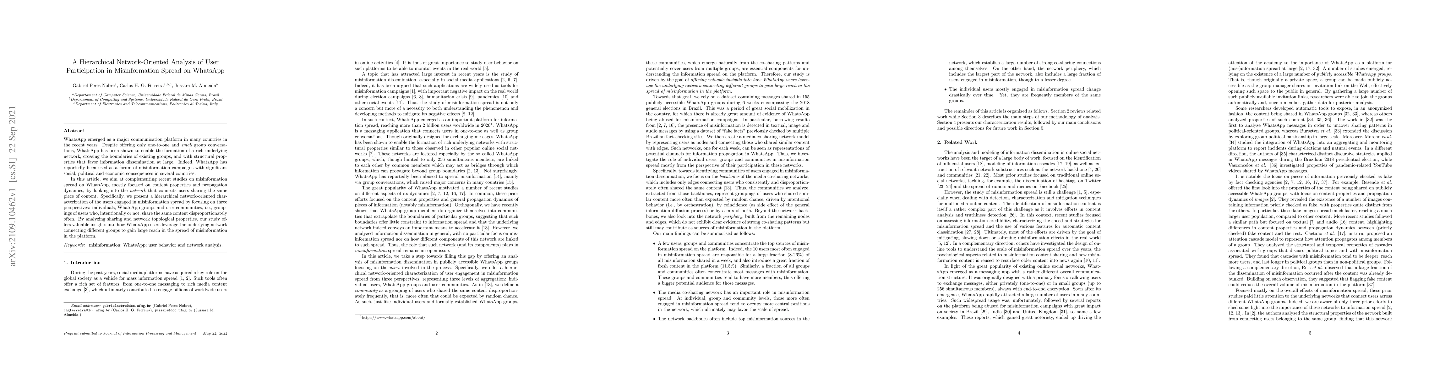 A study analyzing WhatsApp users' participation in misinformation spread identifies how users leverage network connections to disseminate information. The research offers insights into the underlying structural properties of WhatsApp groups that favor misinformation dissemination.