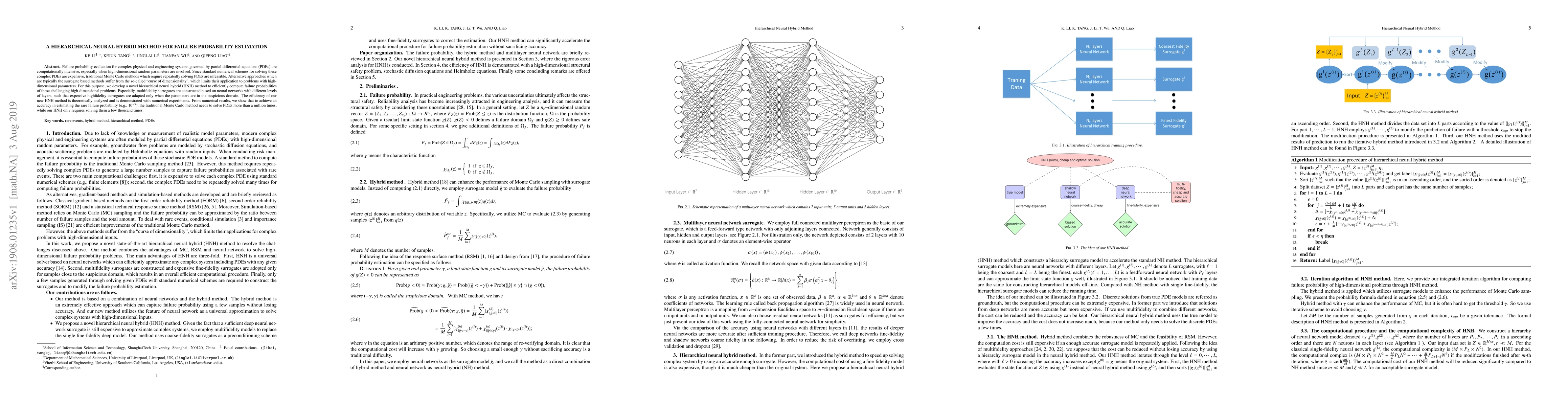This paper introduces a novel hierarchical neural hybrid (HNH) method for estimating failure probabilities in high-dimensional systems governed by partial differential equations (PDEs). The HNH method efficiently computes failure probabilities by using multifidelity neural networks, reducing the computational burden compared to traditional Monte Carlo methods.