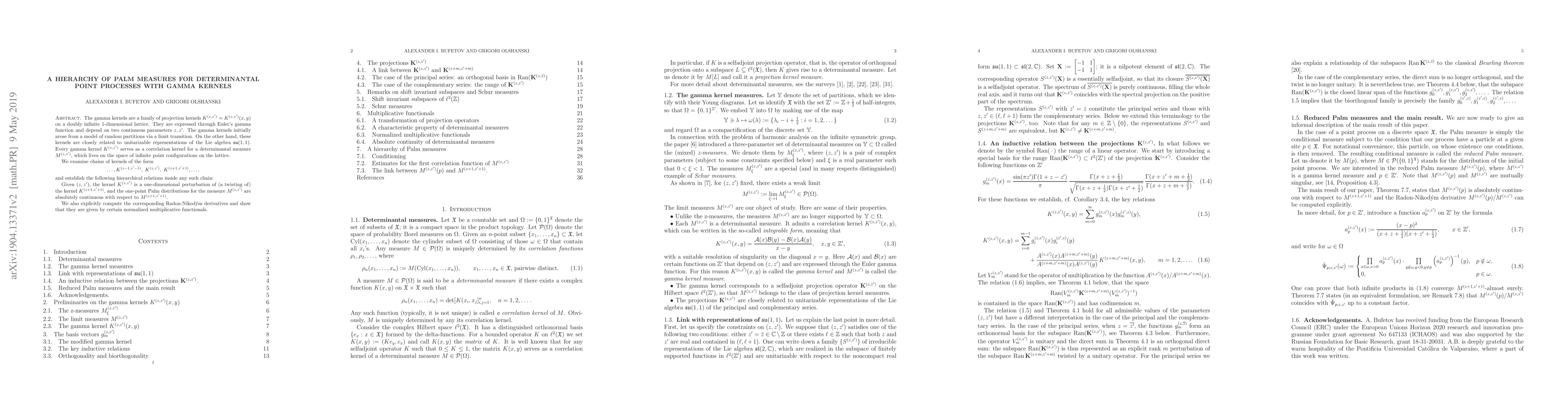Researchers explore a hierarchy of Palm measures for determinantal point processes with gamma kernels, establishing relationships between kernel perturbations and Radon-Nikodçym derivatives.
