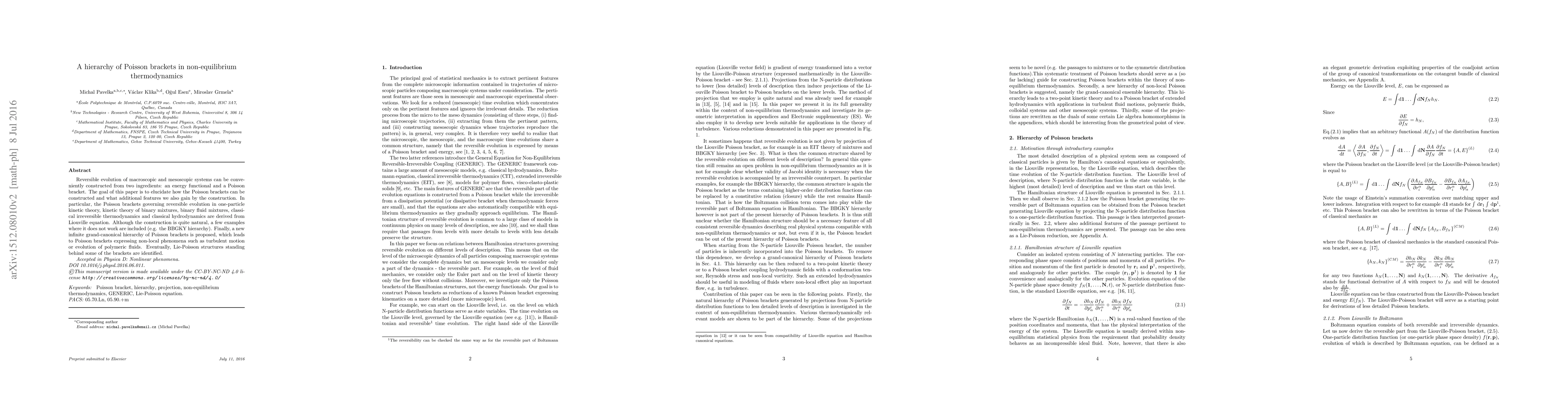 This paper explores the construction of Poisson brackets for reversible evolution in various thermodynamic systems, deriving them from the Liouville equation and highlighting their applicability in kinetic theory and hydrodynamics. It introduces a new grand-canonical hierarchy of Poisson brackets to model non-local phenomena like turbulence, while identifying underlying Lie-Poisson structures.