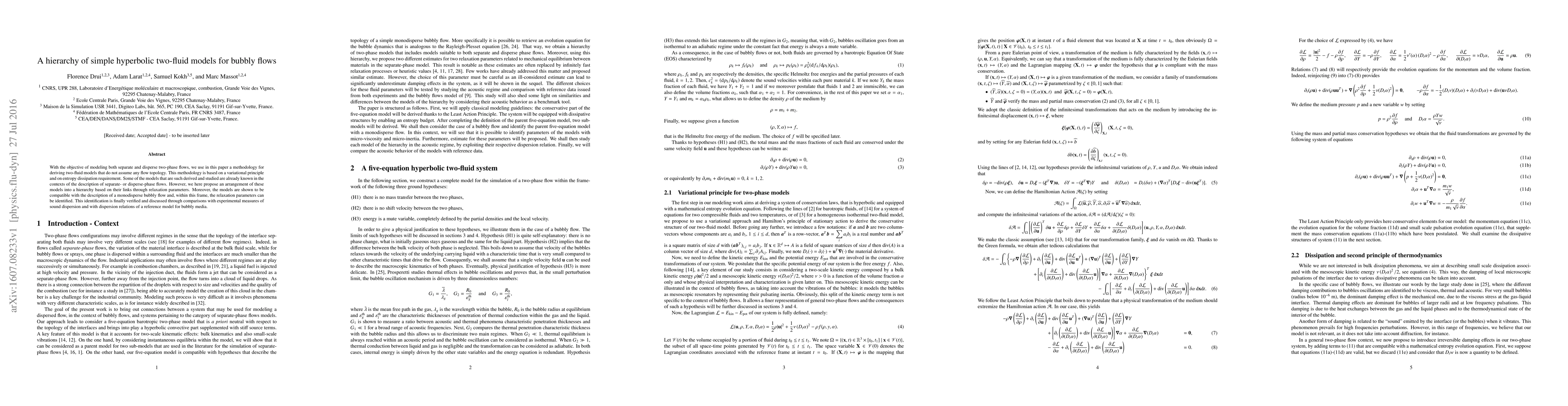 With the objective of modeling both separate and disperse two-phase flows, we use in this paper a methodology for deriving two-fluid models that do not assume any flow topology. This methodology is based on a variational principle and on entropy dissipation requirement. Some of the models that are such derived and studied are already known in the contexts of the description of separate-or disperse-phase flows. However, we here propose an arrangement of these models into a hierarchy based on their links through relaxation parameters. Moreover, the models are shown to be compatible with the description of a monodisperse bubbly flow and, within this frame, the relaxation parameters can be identified. This identification is finally verified and discussed through comparisons with experimental measures of sound dispersion and with dispersion relations of a reference model for bubbly media.