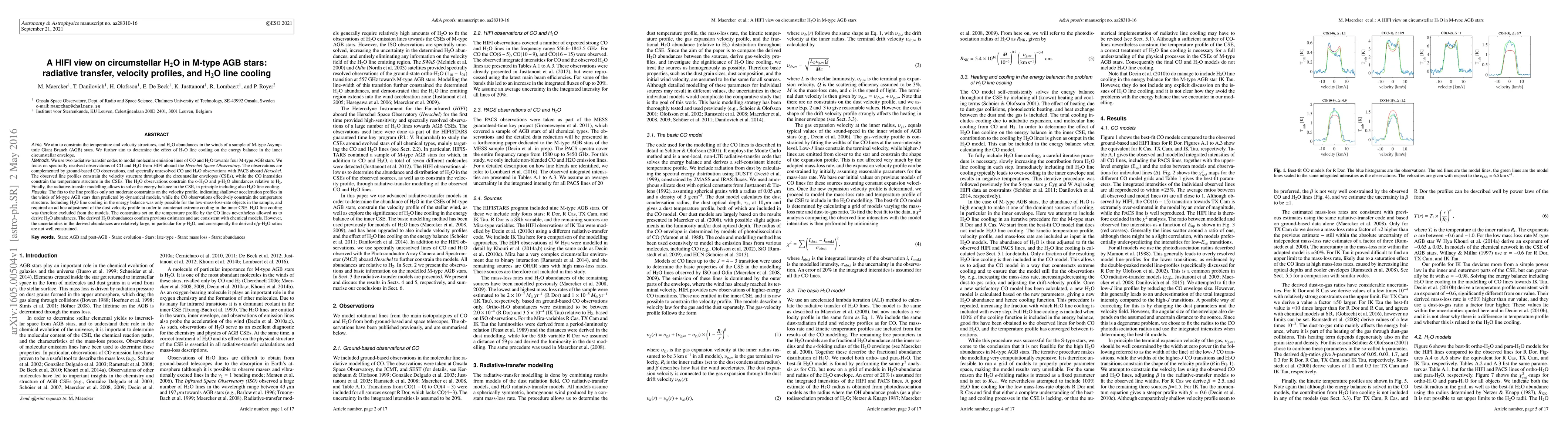 This paper investigates the temperature and velocity structures, and H2O abundances in the winds of M-type AGB stars using HIFI observations and radiative-transfer modelling. The study finds that H2O line cooling significantly affects the energy balance only for low-mass-loss-rate stars, and the derived H2O abundances are consistent with previous estimates but have large uncertainties.