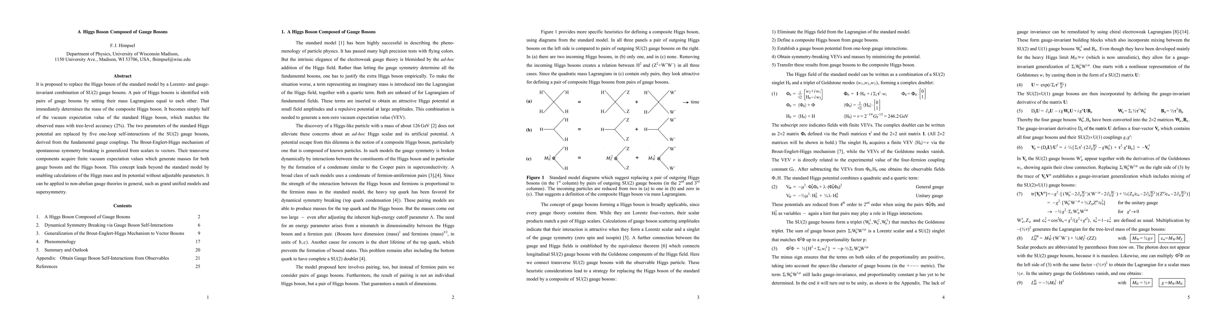 This paper proposes a novel model where the Higgs boson is replaced by a composite structure made of SU(2) gauge bosons, with its mass determined by the vacuum expectation value of the standard Higgs boson. The model eliminates adjustable parameters by deriving the Higgs potential from gauge couplings, extending the Higgs mechanism to vector fields.