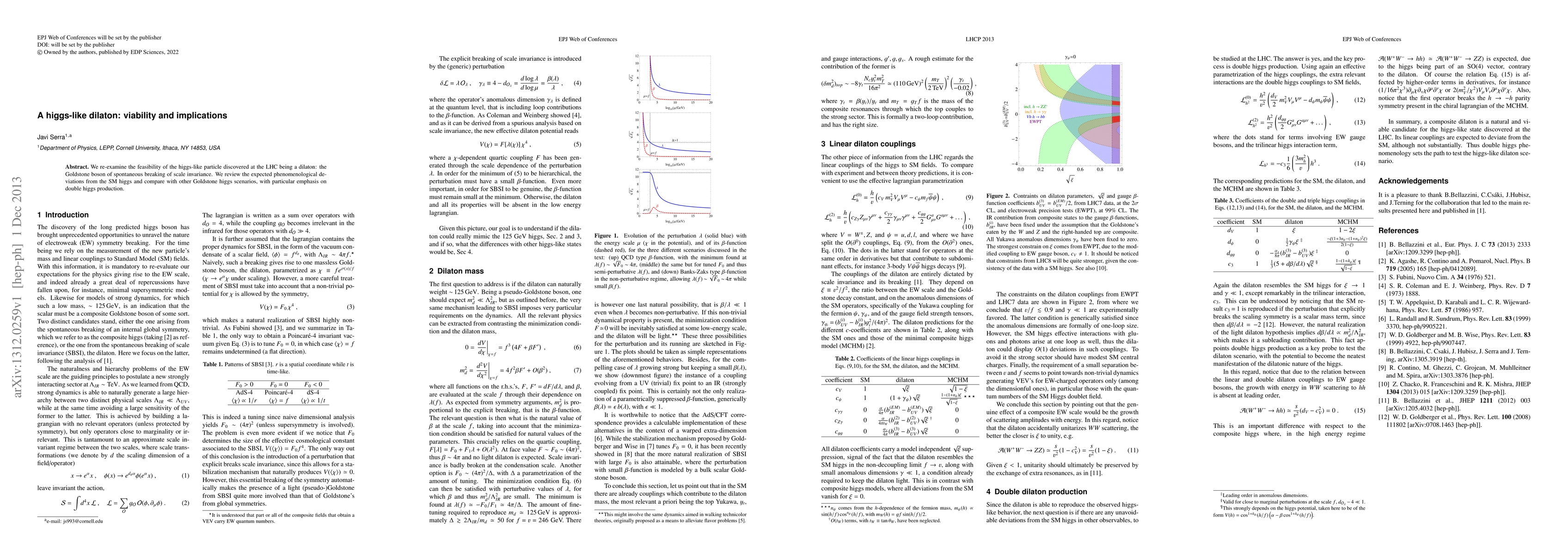 We re-examine the feasibility of the higgs-like particle discovered at the LHC being a dilaton: the Goldstone boson of spontaneous breaking of scale invariance. We review the expected phenomenological deviations from the SM higgs and compare with other Goldstone higgs scenarios, with particular emphasis on double higgs production.