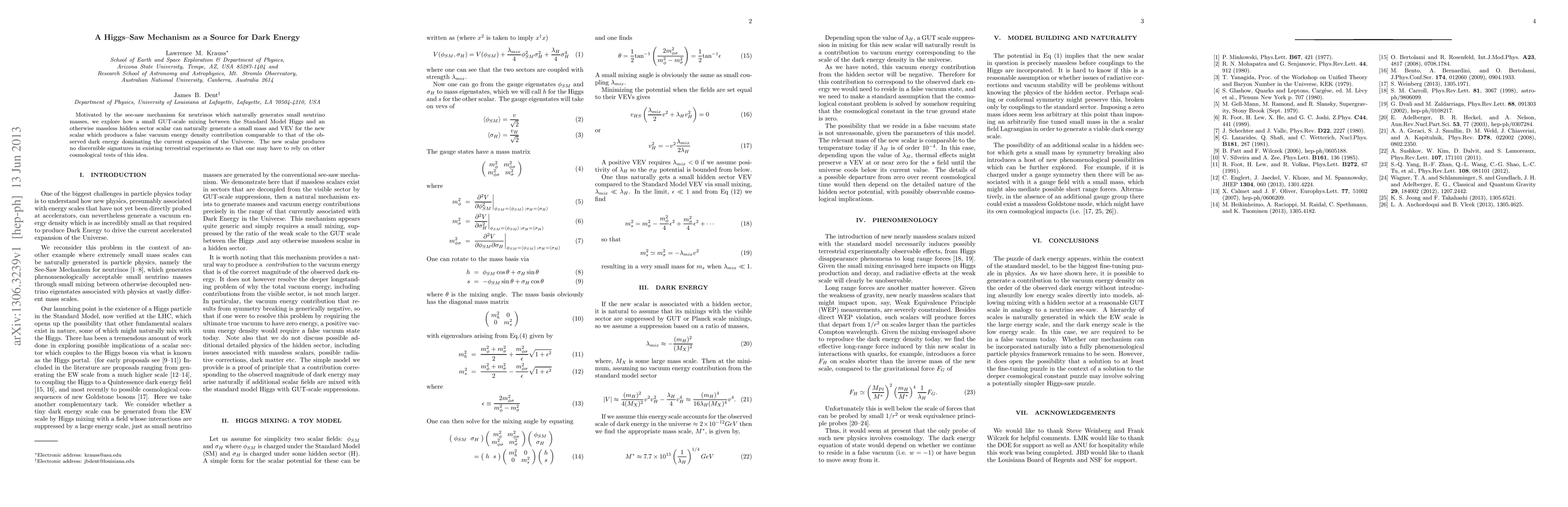 Motivated by the see-saw mechanism for neutrinos which naturally generates small neutrino masses, we explore how a small GUT-scale mixing between the Standard Model Higgs and an otherwise massless hidden sector scalar can naturally generate a small mass and VEV for the new scalar which produces a false vacuum energy density contribution comparable to that of the observed dark energy dominating the current expansion of the Universe. The new scalar produces no discernible signatures in existing terrestrial experiments so that one may have to rely on other cosmological tests of this idea.