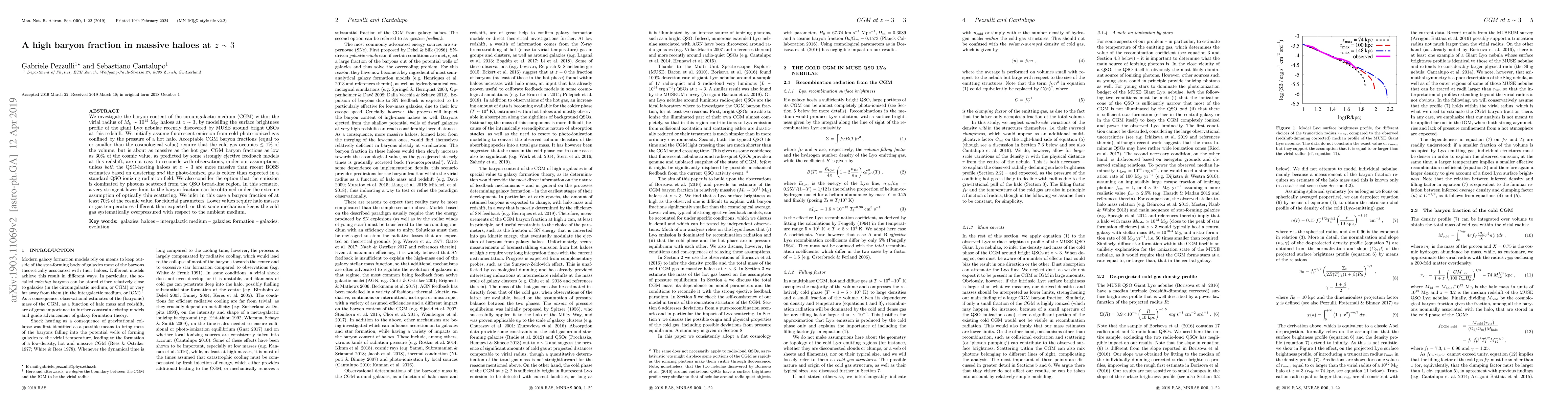 This paper investigates the baryon content in the circumgalactic medium of massive haloes at z~3, finding that the baryon fraction is significantly higher than predicted by some ejective feedback models. The study suggests a baryon fraction of at least 70% of the cosmic value, challenging current models unless halo masses or gas temperatures differ from expectations.