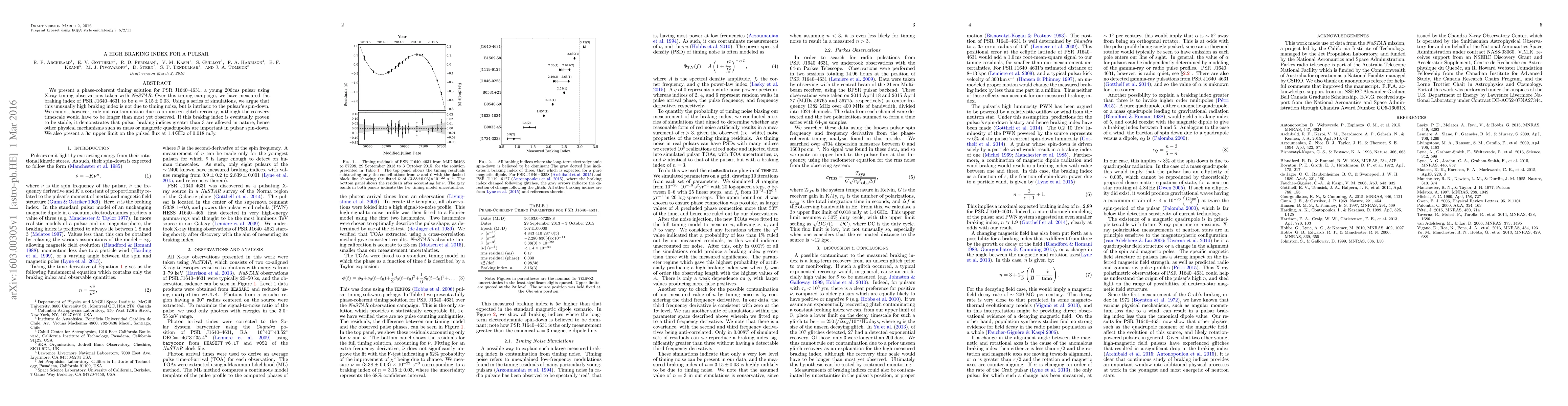 This paper reports a high braking index of n = 3.15±0.03 for the pulsar PSR J1640-4631, suggesting intrinsic spin-down mechanisms beyond standard models. The findings imply potential roles of mass or magnetic quadrupoles in pulsar evolution.